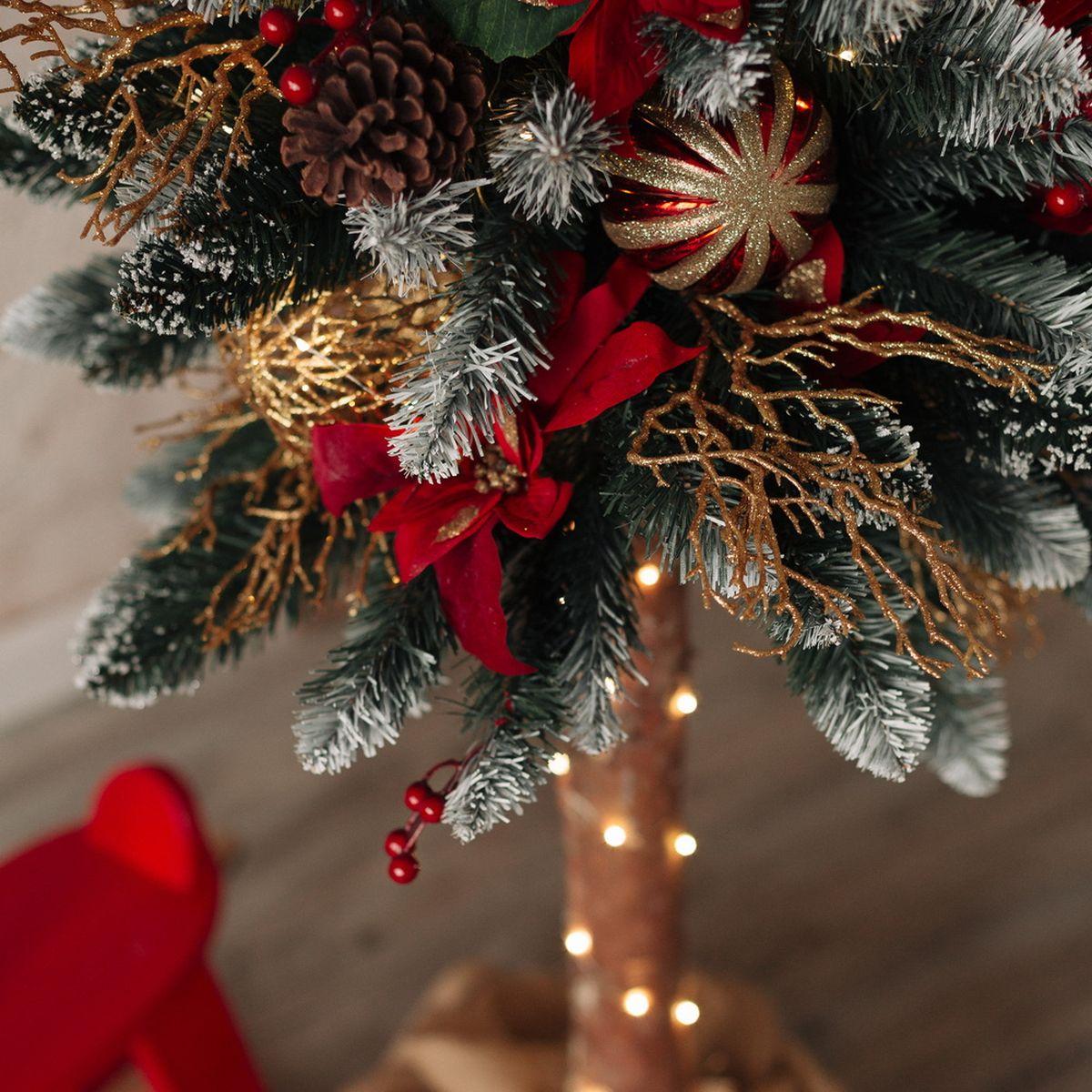 Do you want a Christmas tree that looks natural, is already beautifully decorated and will fit even in a small apartment? Christmas tree on a trunk 100 cm – Diamond fir with pinecones and rowan is a ready-made Christmas decoration that instantly introduces the magic of Christmas.