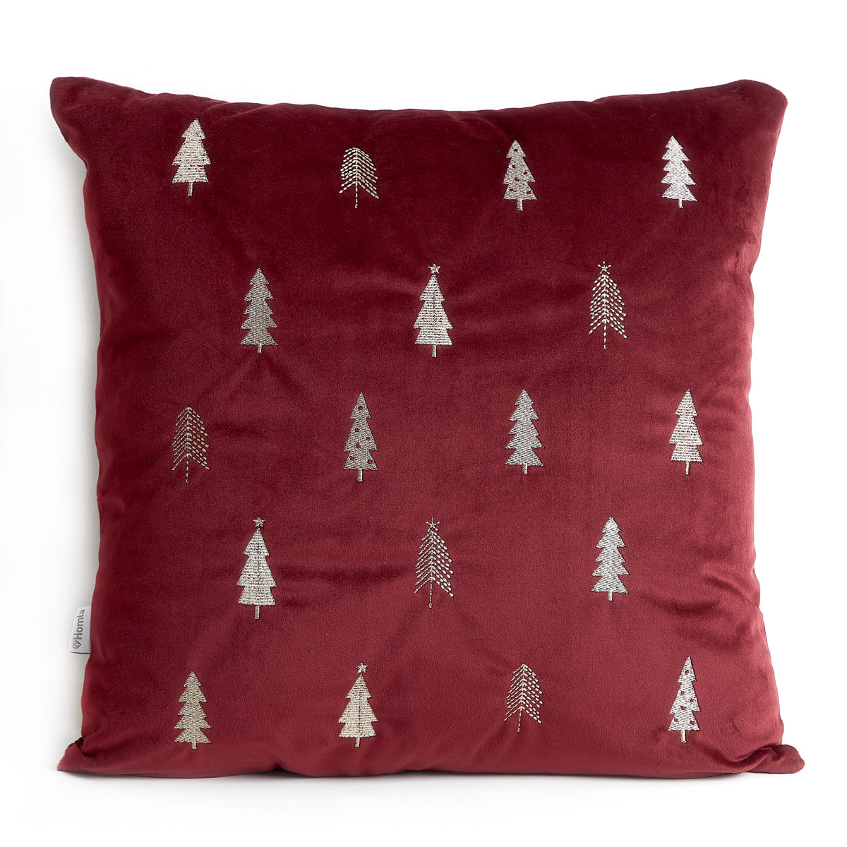 The ARBA cushion cover is made of material in a burgundy shade – it will go well with bright colors as well as white and classic black. It is decorated with simple Christmas trees, which have been embroidered with gold thread.