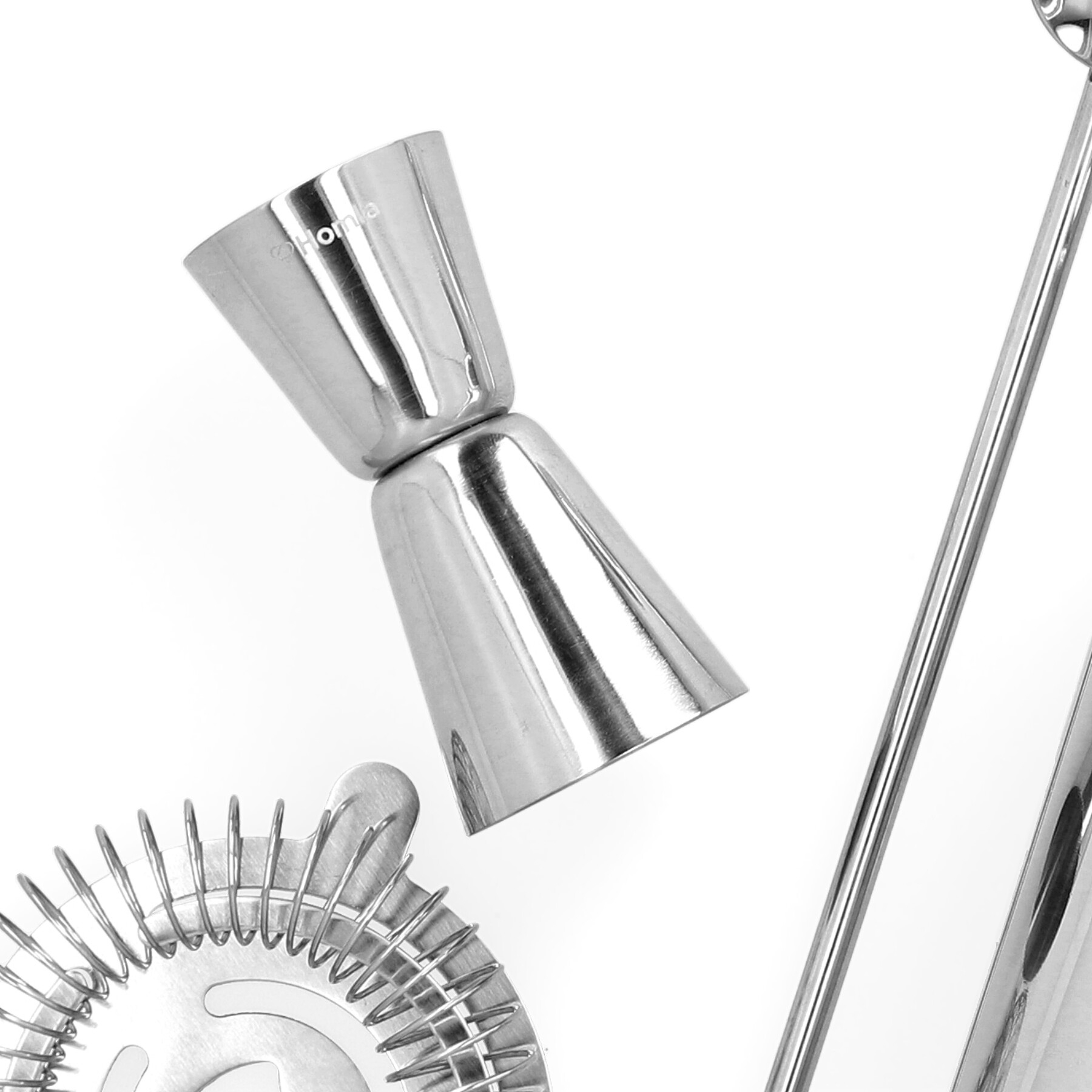 The MOI set is a set of five items that, when combined together, will help you create the best drinks at home. In the set you will find everything you will need to make your drink look like it should: Ice shaker, bartender strainer, bartender spoon with disk, bar measure and ice tongs. The dimensions of the package, including all the items in the kit inside, are 24x32cm.
