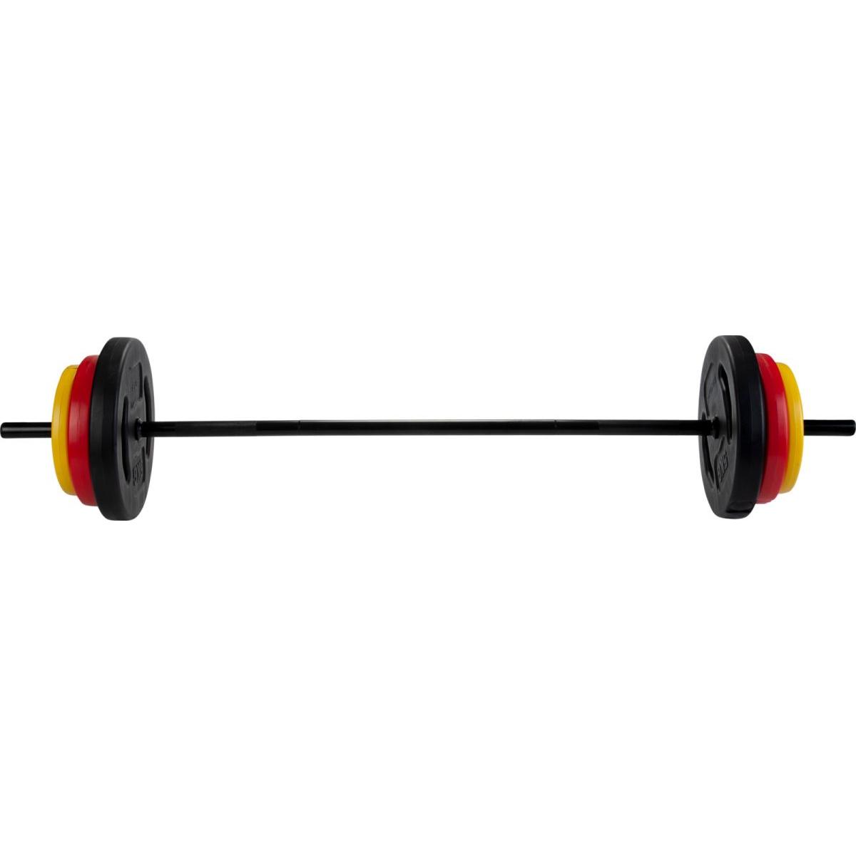 - Weights: 2 x 5kg (black), 2 x 2.5kg (red), 2 x 1.25kg (yellow)