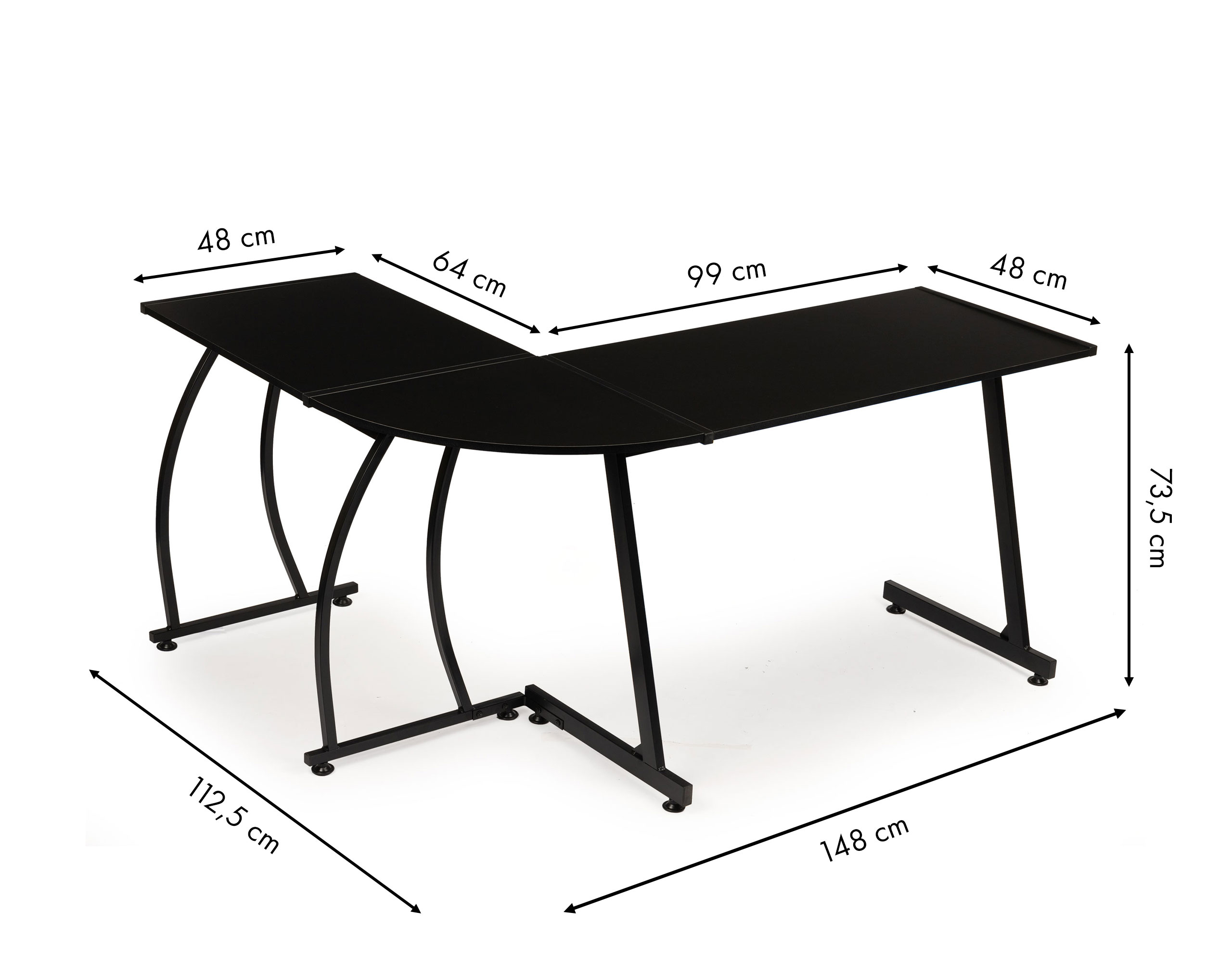 - Main tabletop: 99×48 cm, Side tabletop: 64×48 cm