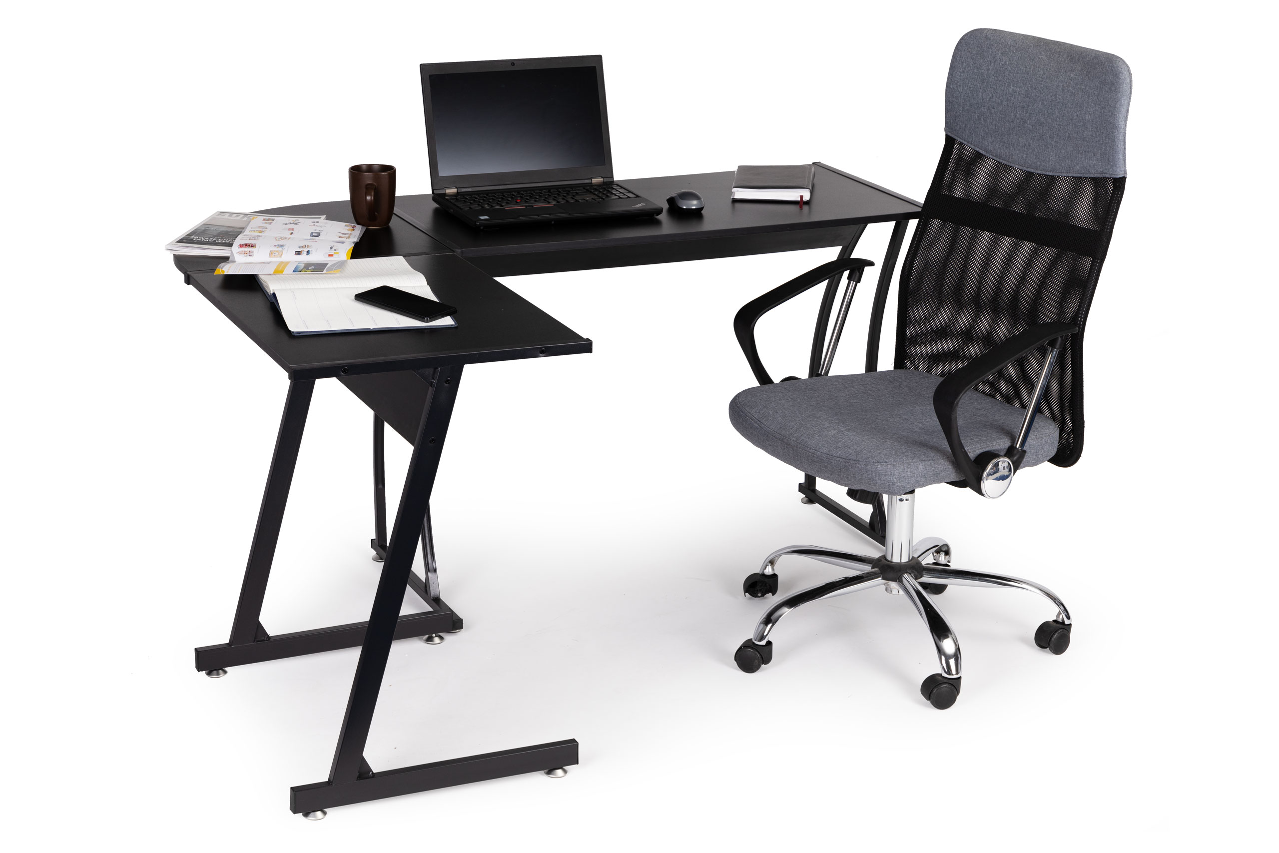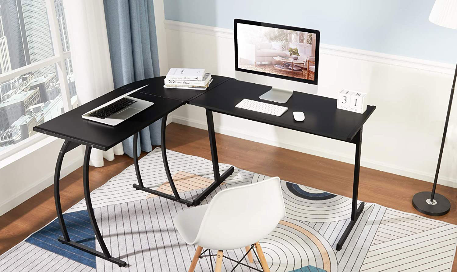 The corner desk is versatile and fits perfectly in various rooms. It can be used in a study, office, or even in a room designed for ambitious gamers.