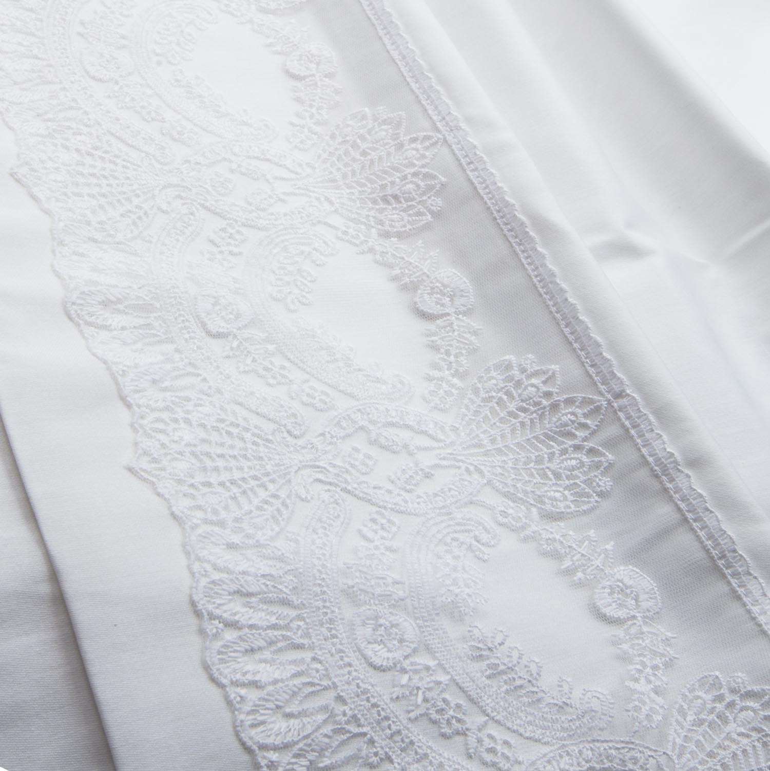 Luxurious, elegant bedding set, made of high quality cotton satin woven with NE 40/1 yarn and 210TC density. This fabric is very smooth, soft and pleasant to the touch. The comforter cover and pillowcases are decorated with strands of wide, decorative guipure. The duvet cover is zippered, and the pillowcases have a hotel tab. This bedding will meet the expectations of the discerning customer looking for a high-end product. It is packed in an exclusive box and can be an extra luxurious gift. The bedding sets are made of OEKO-TEX certified fabrics.