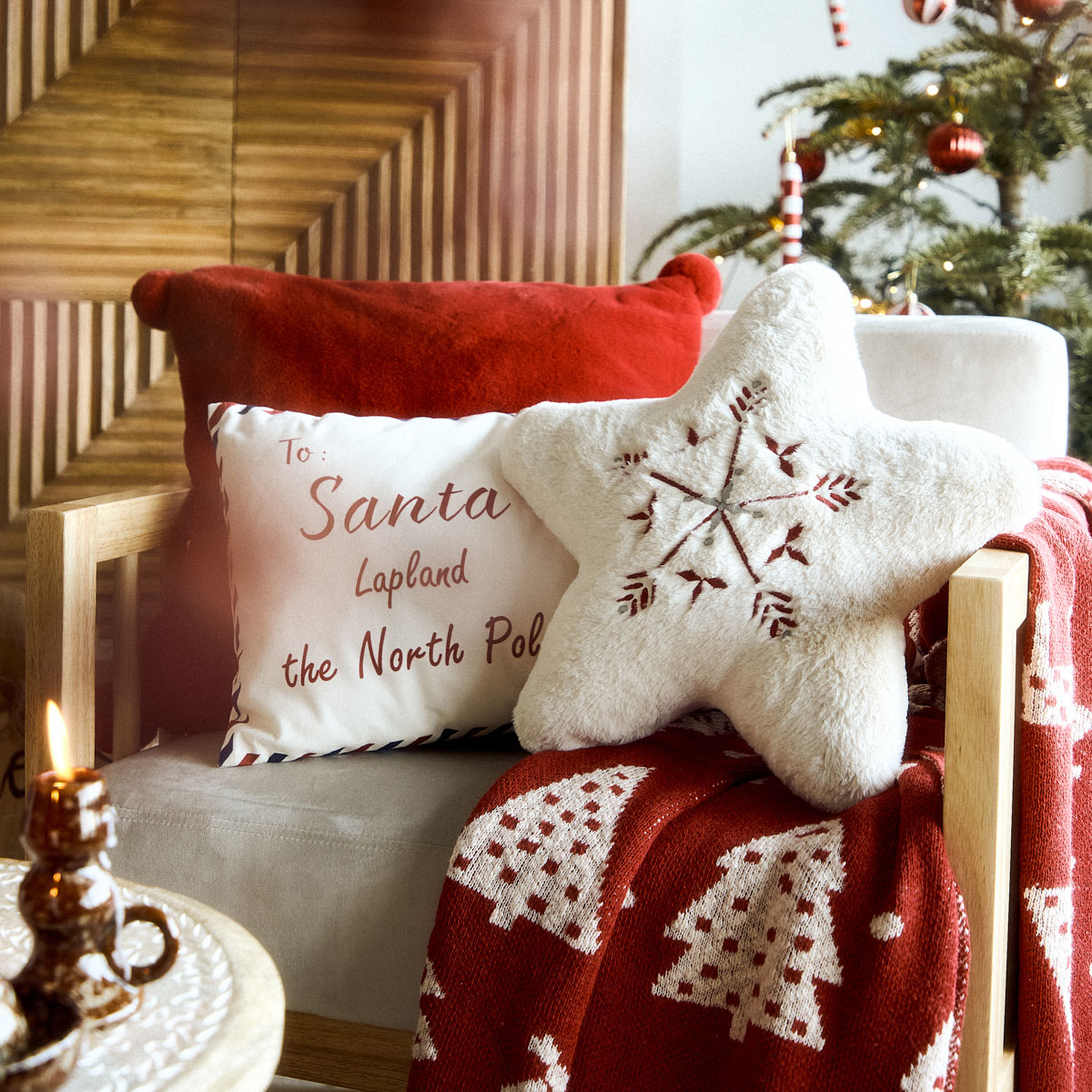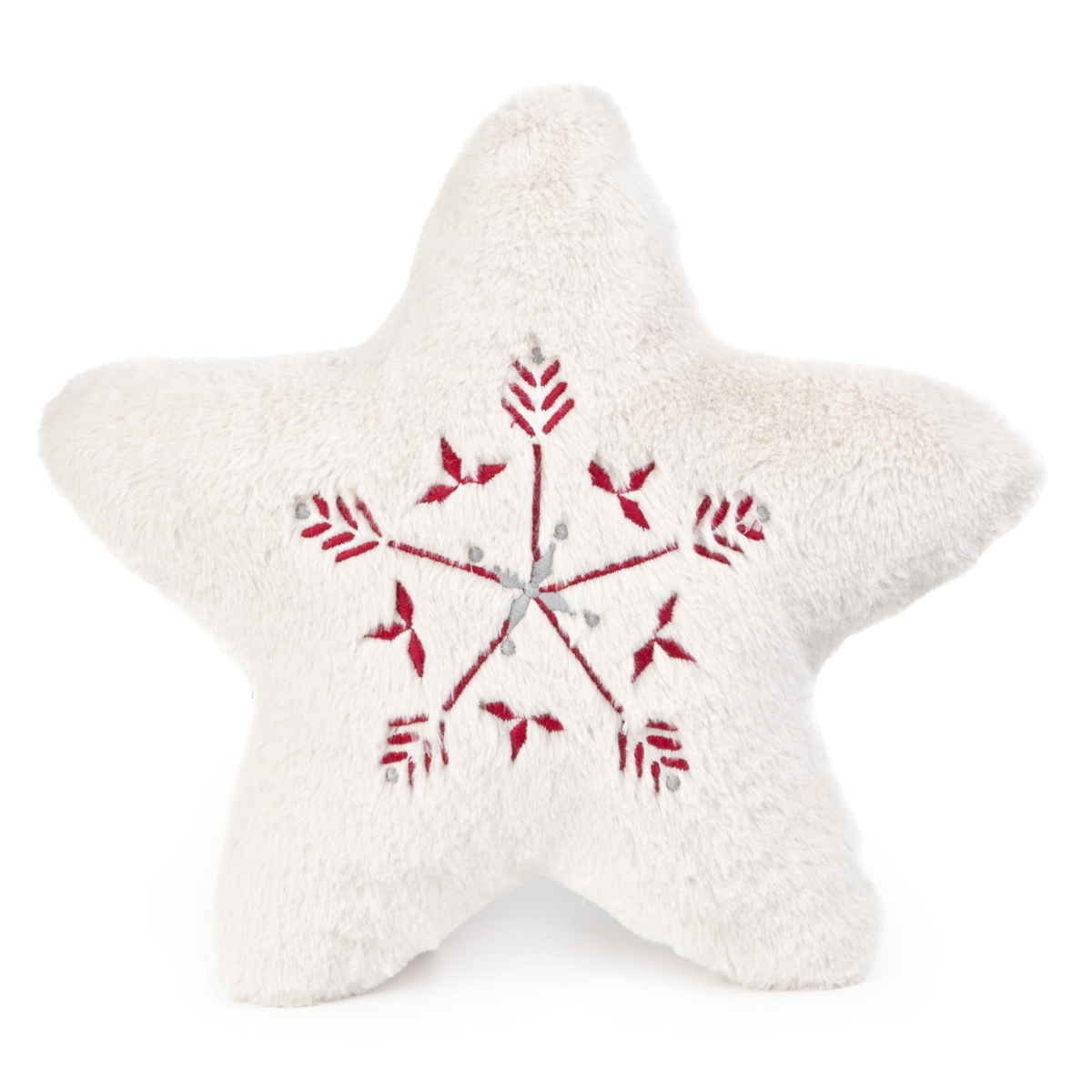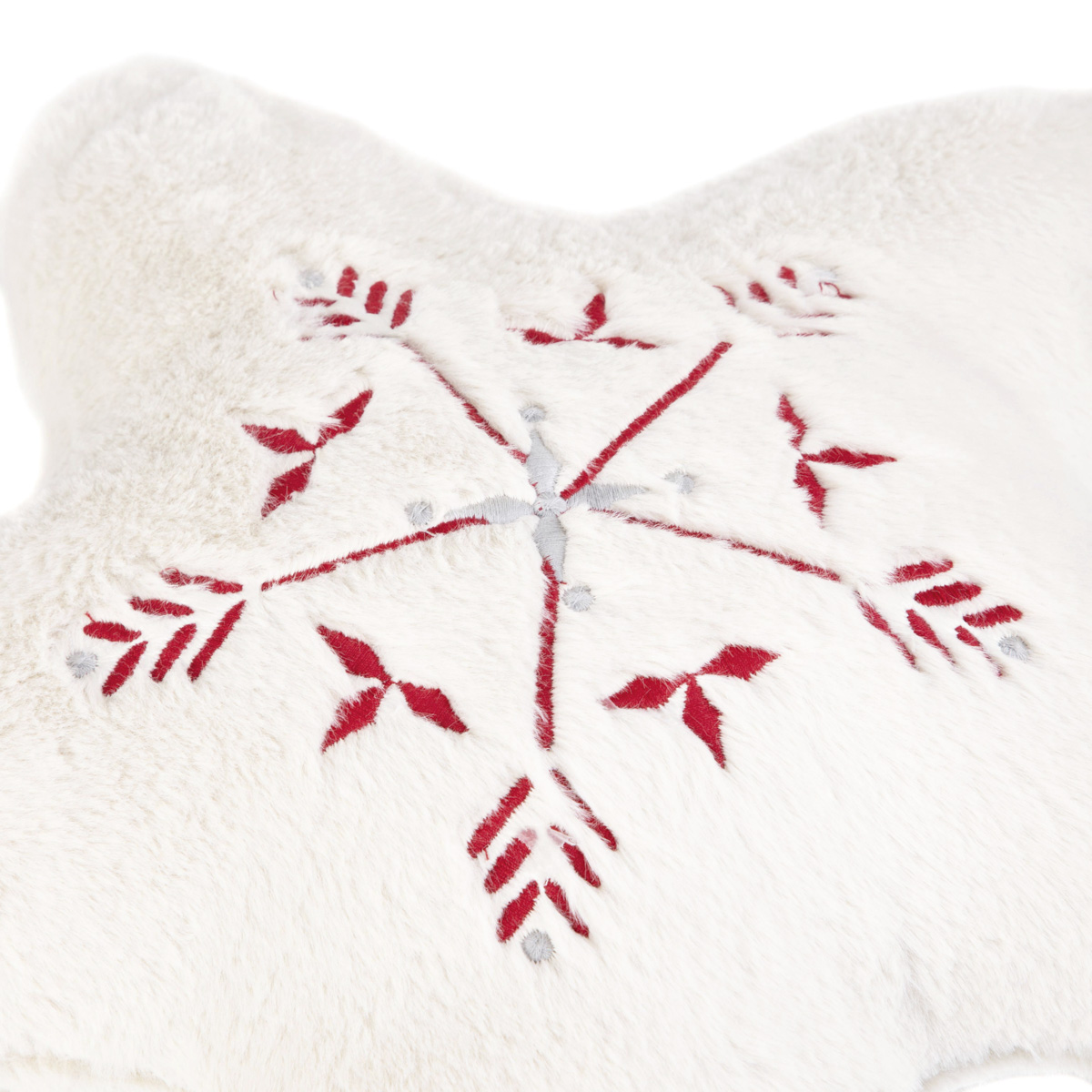 The HOMLA STELLA decorative cushion catches the eye with its charming star shape. The center of the pillowcase is decorated with an embroidered pattern in red and silver threads, which wonderfully completes its look. The surface of the cushion has the texture of soft and warm fur. You’ll love laying your head on it while lounging after Christmas dinner or Christmas lunch.