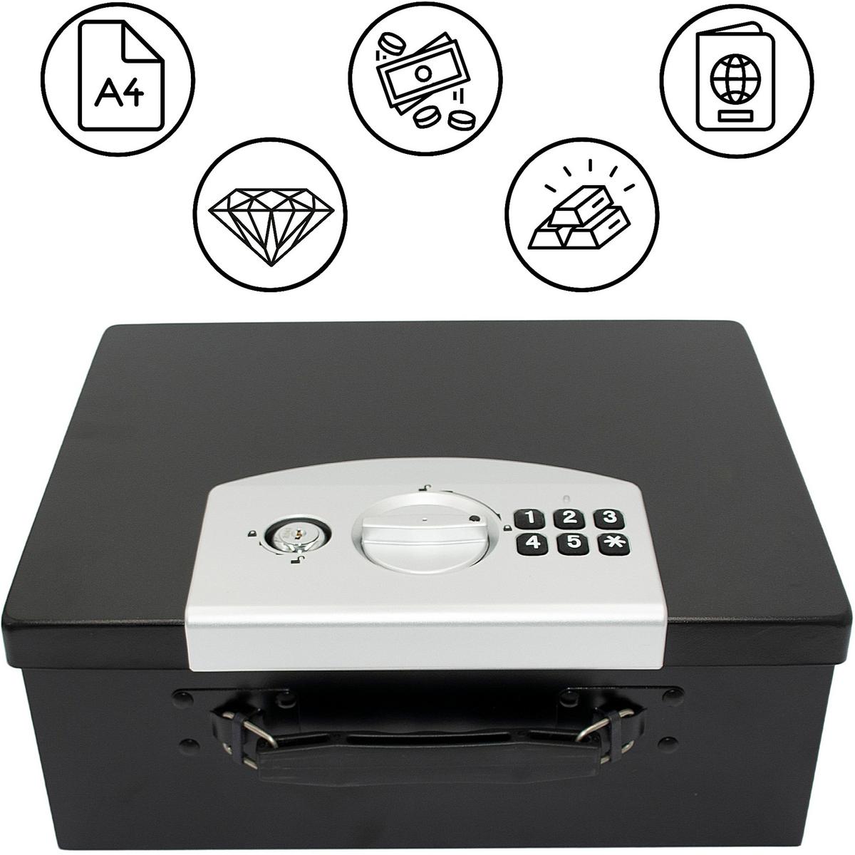 Need a secure place for your cash, documents or jewelry – and in a compact form? The SASKA GARDEN 28.9 x 8.7 x 20.3 cm digital lock safe (model 1068756) is the perfect solution for those who want to protect their valuables without taking up a lot of space.
