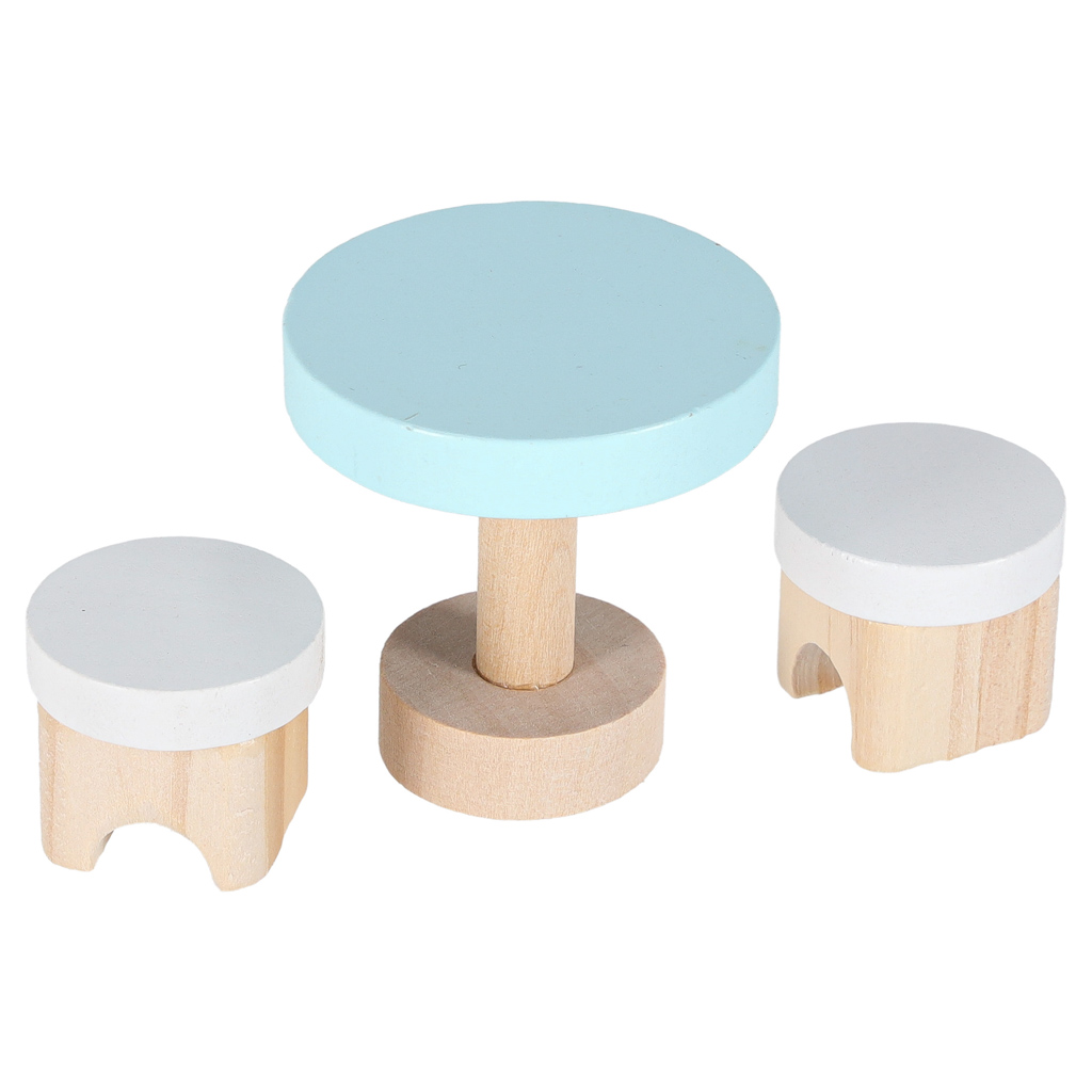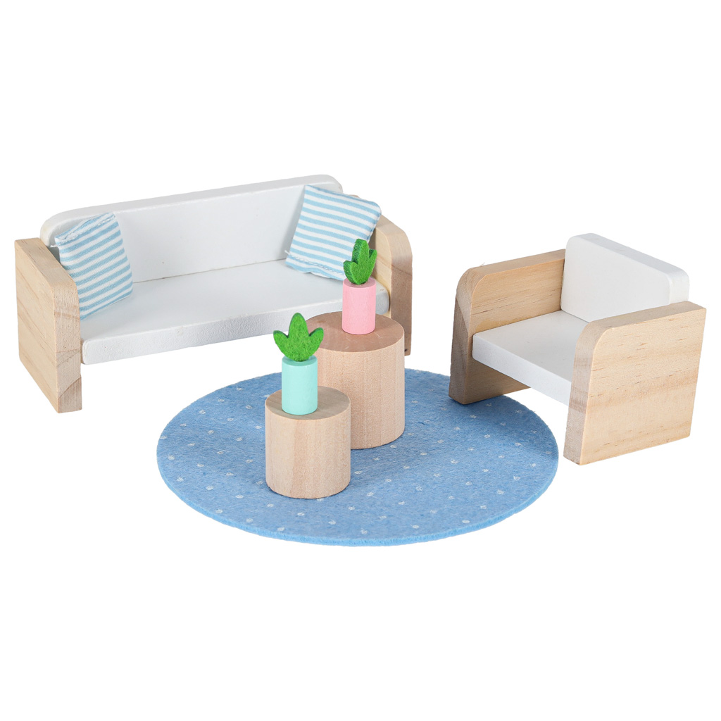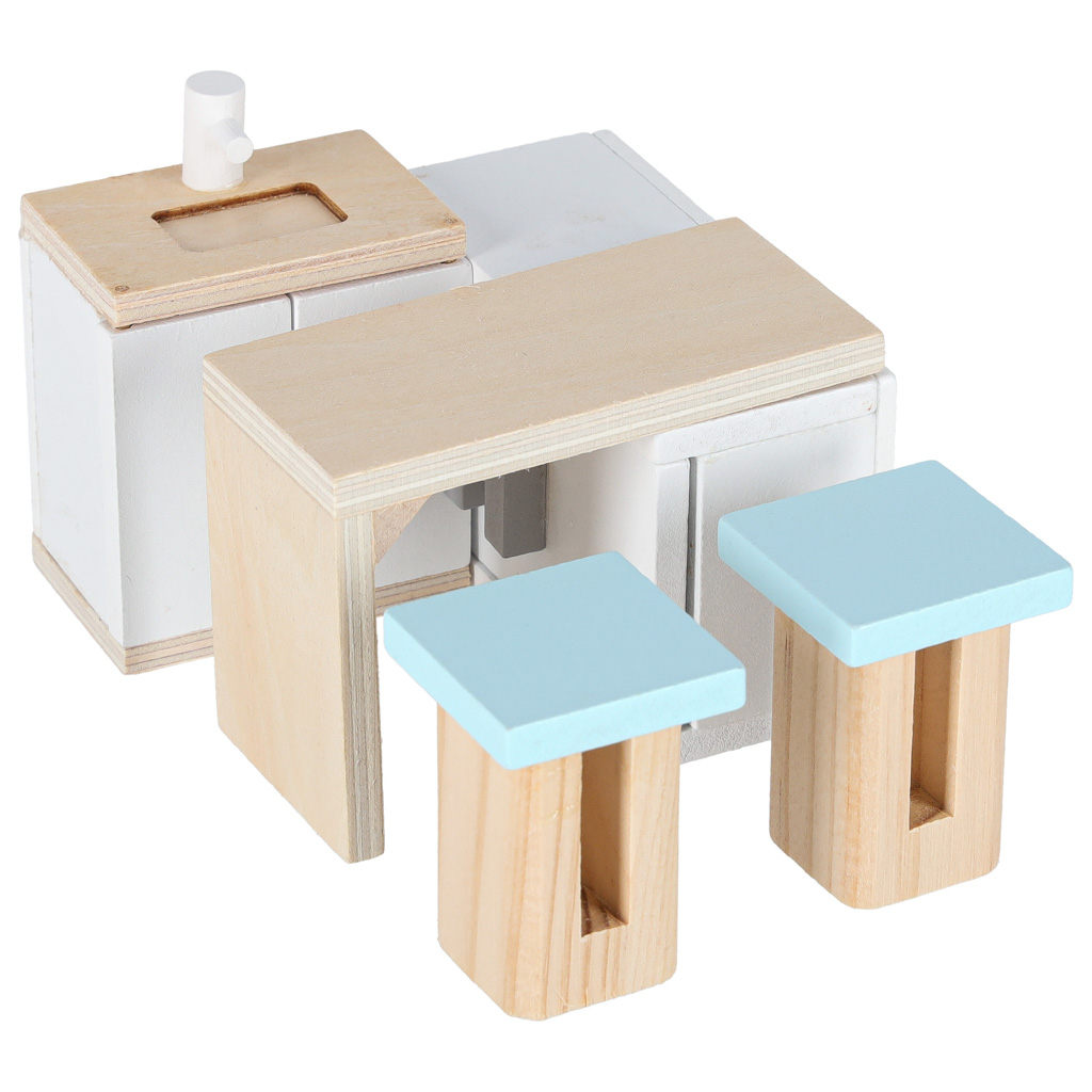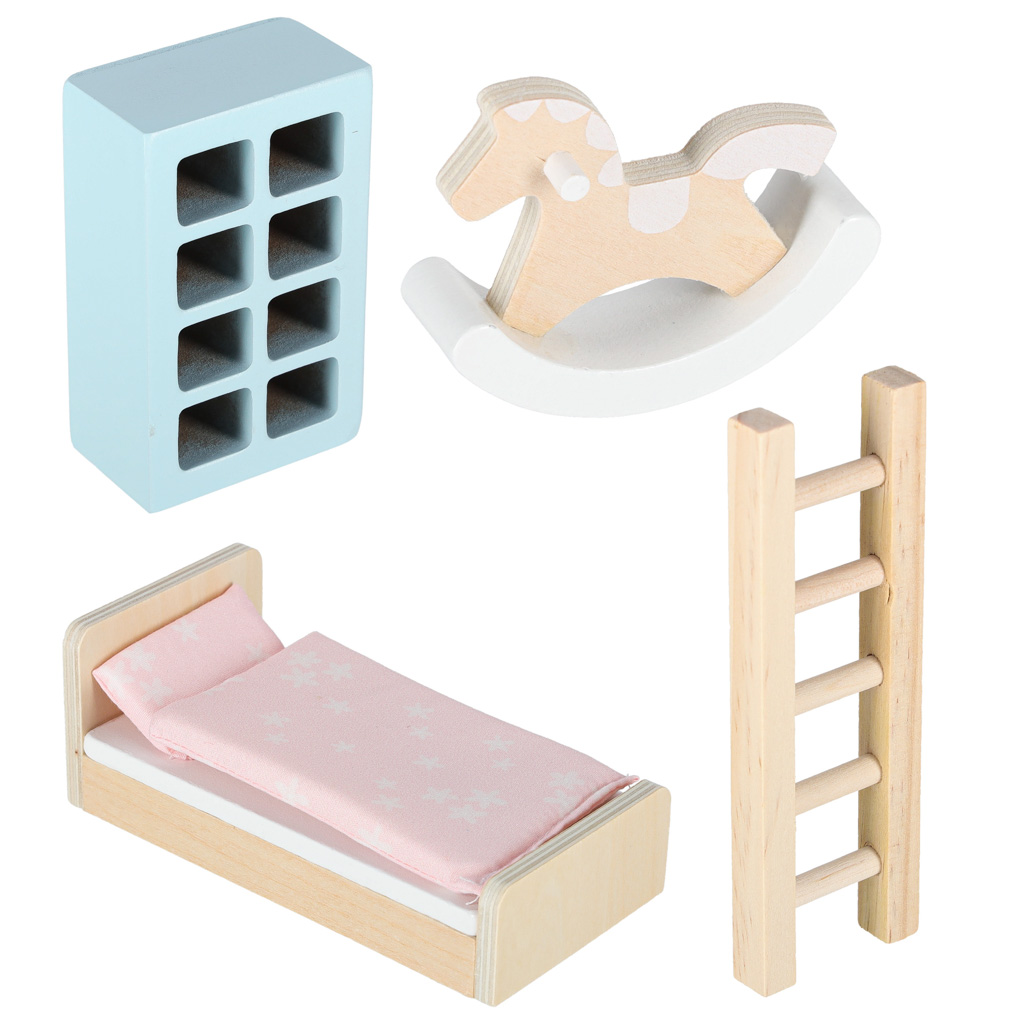 It has handy wooden furniture – rearranging furniture allows to practice child’s small motor skills and hand-eye coordination