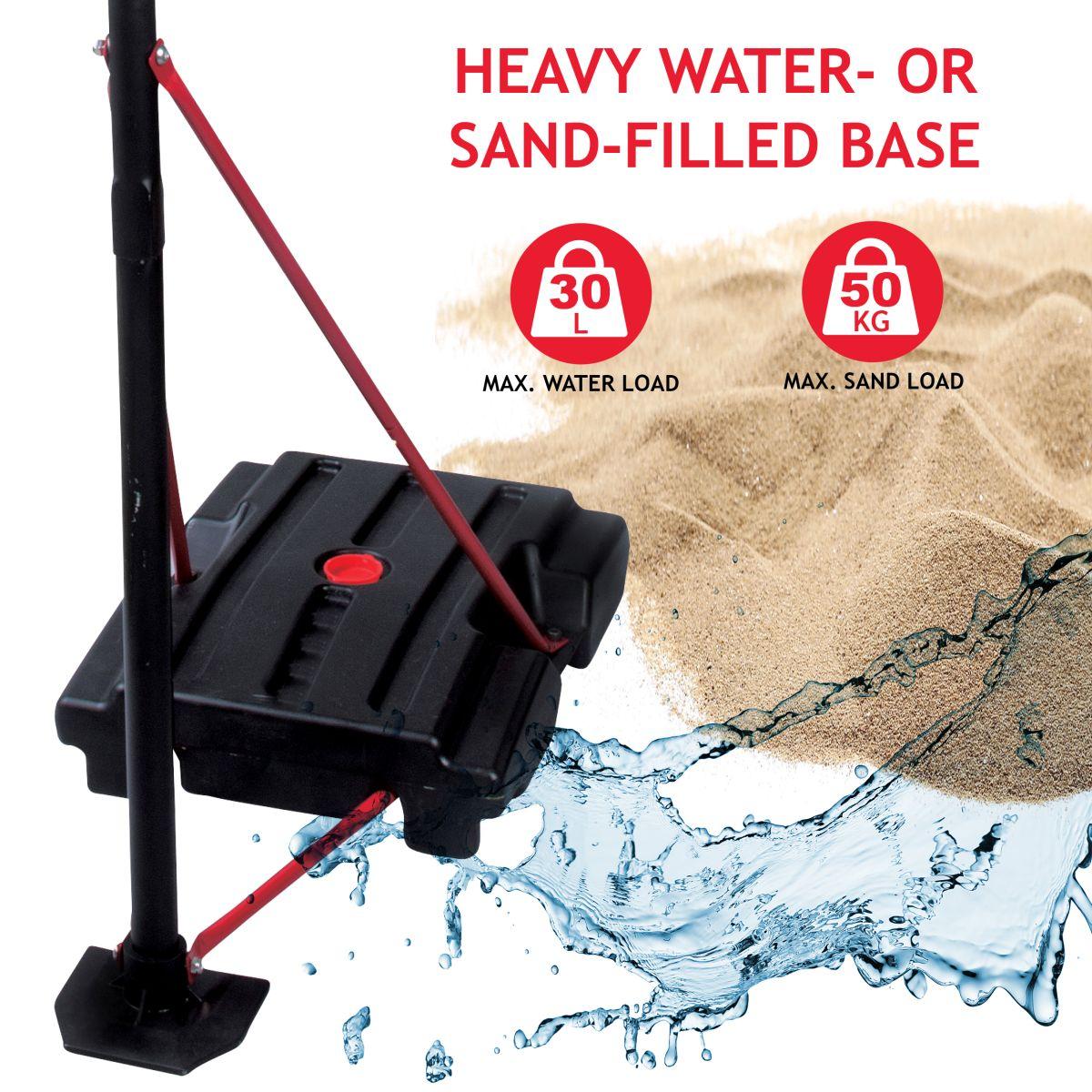 - reinforced base, filled with sand or water will ensure stable setting on a flat surface