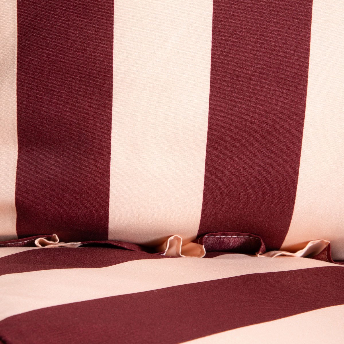 Looking for bedding that combines elegance with comfort? TIFFANY bedding is a unique set that will add charm to any bedroom. The burgundy stripes and striking frill create a stylish ensemble and will easily blend into any setting. The duvet set has a 160 × 200 cm duvet cover and two 50 × 60 cm pillowcases.