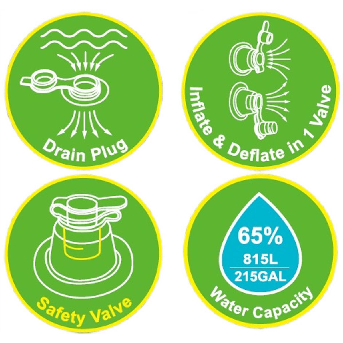 The pool is extremely easy to inflate and deflate, allowing you to quickly prepare it for use or assemble it after the fun is over. The simple design makes it take only a few minutes to assemble, and once deflated, it takes up little space for easy storage. You can easily move it, take it on vacation or set it up anywhere you want to relax and play.
