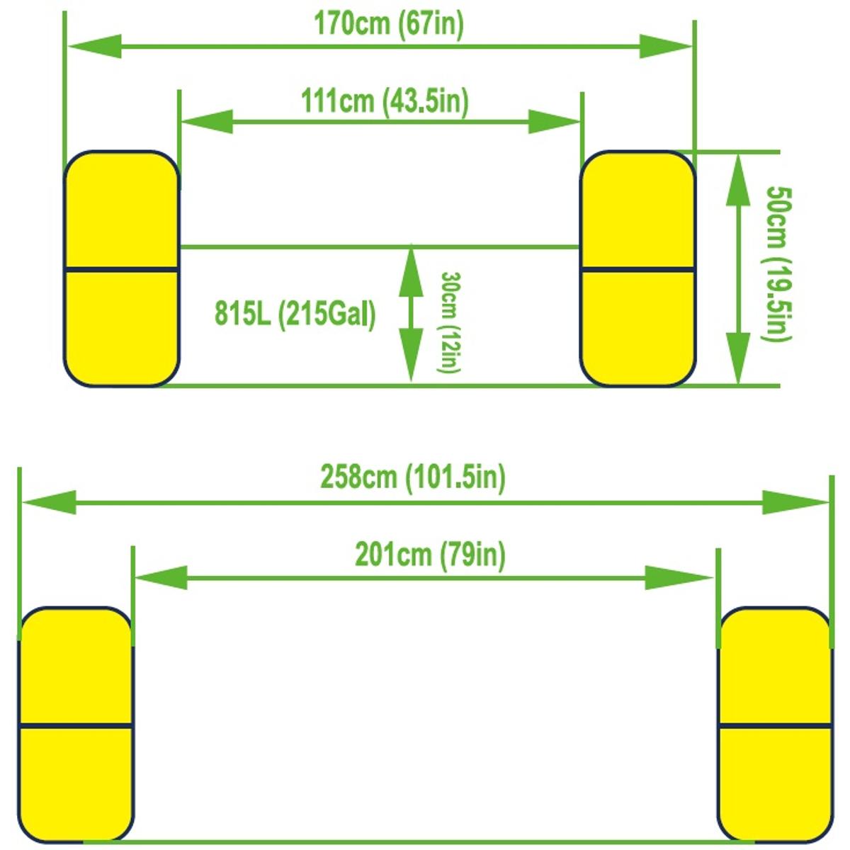 - External dimensions of the inflated pool (without gates) approx: 258 x 170 x 50 cm (L x W x H).