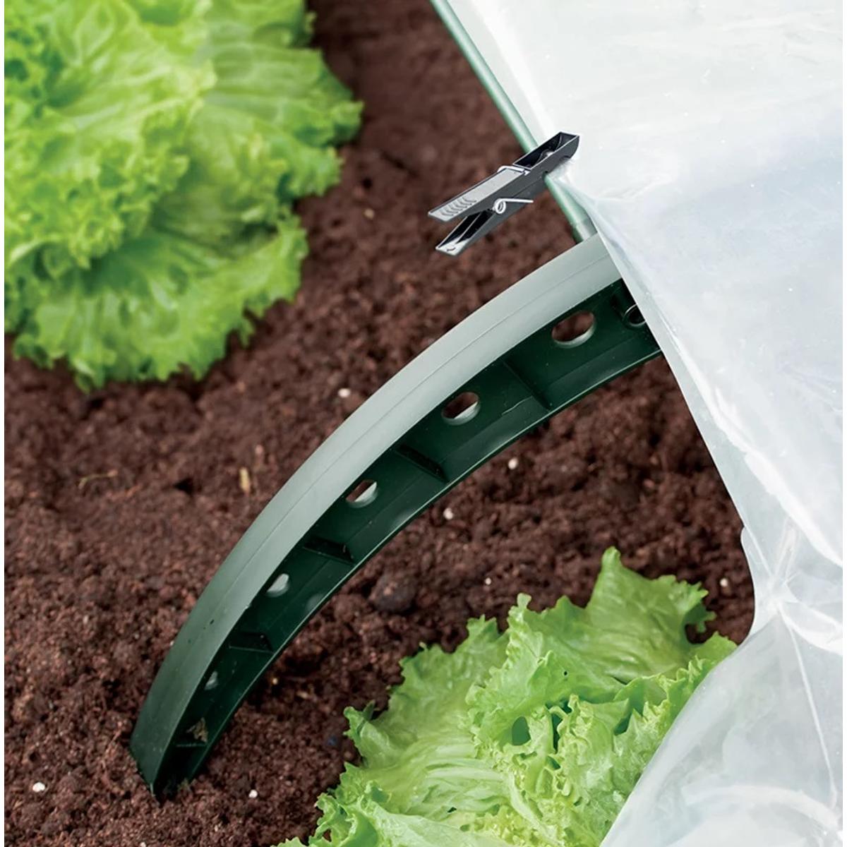 The FLOO foil tunnel provides plants with stable and optimal conditions for growth, protecting them from sudden temperature changes, wind and rain. The transparent foil allows free access to sunlight, while retaining heat inside, which promotes faster germination and healthy development of crops.