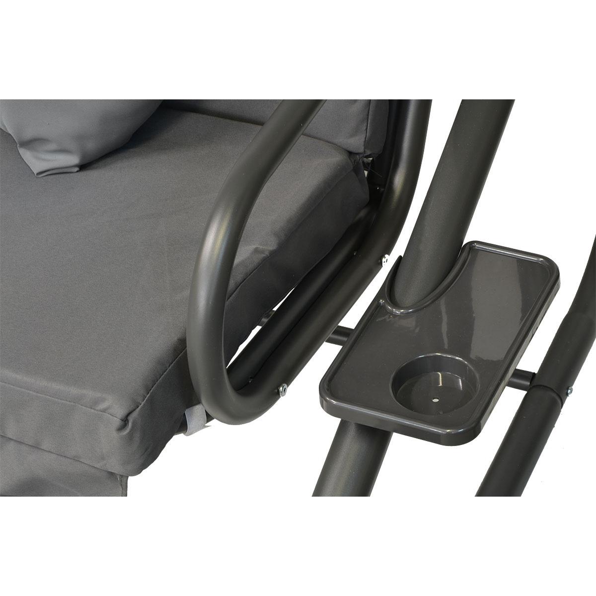 The swing has many functions and some necessary gadgets like cup holders and the ability to unfold the mattress to 157 x 106 cm, which gives you the opportunity to relax and sleep.