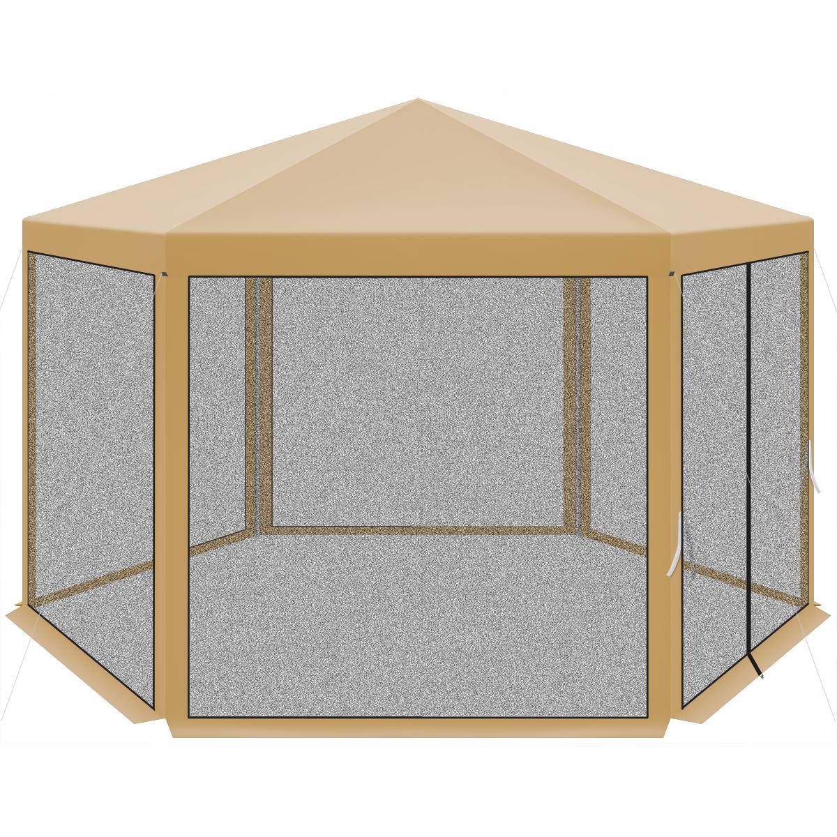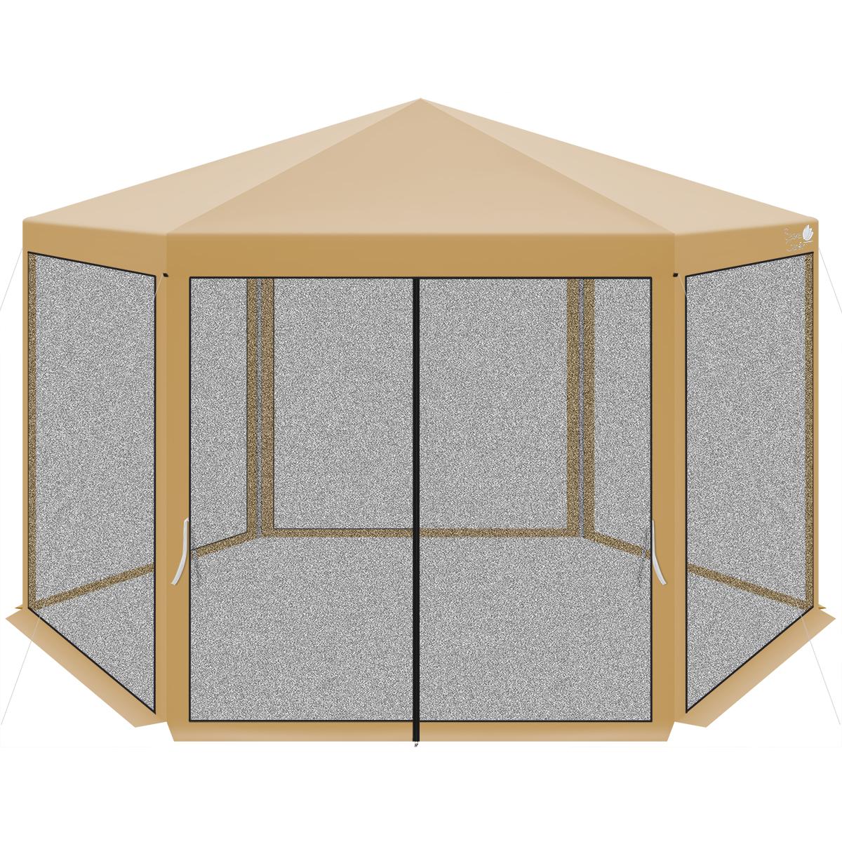 Sunday dinner with the family or an evening with friends in the garden will make you more pleasant, this hexagonal pavilion with mosquito net from Saska Garden. The arrangement of its interior depends only on your imagination. You have many possibilities and a lot of space to install lighting, decorations in it, set up tables and furniture, necessary for various meetings. The tent is convenient to use and easy to assemble.