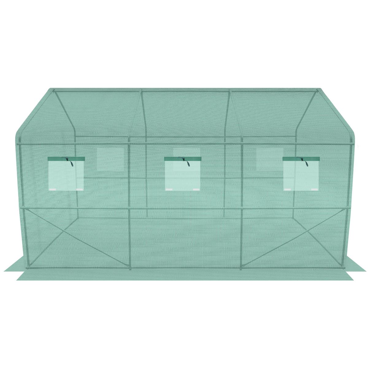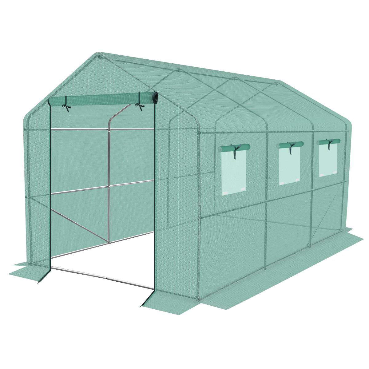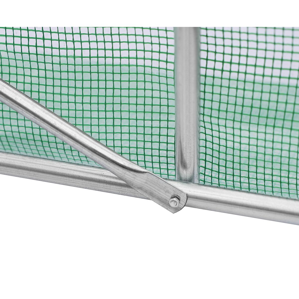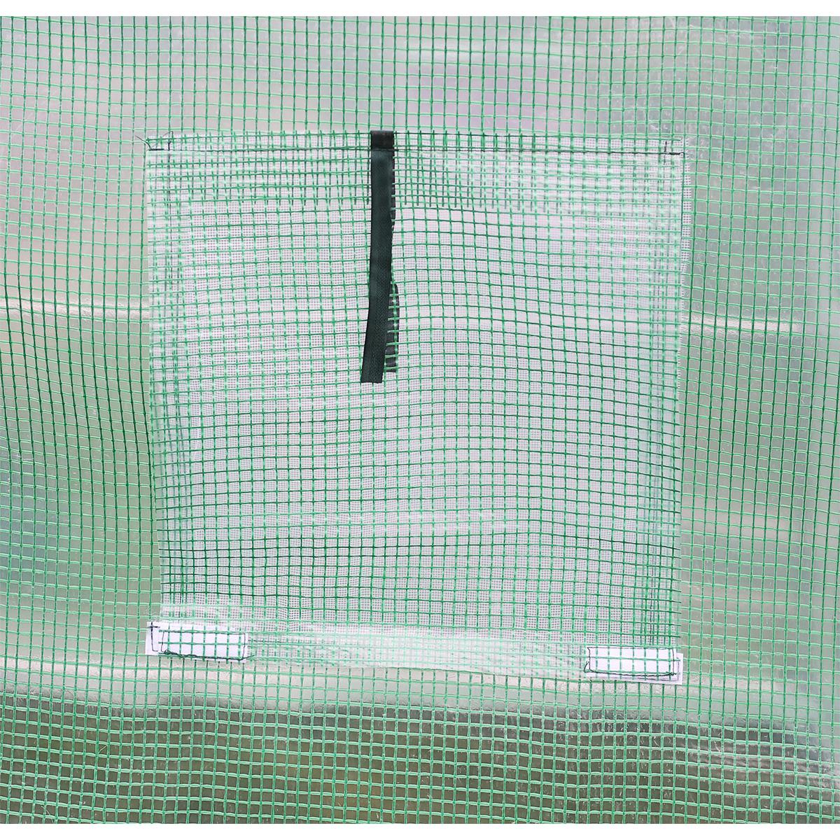 The greenhouse has been thoughtfully designed. It has 6 windows with mosquito nets, lockable o open at any time from the outside, which give you the possibility to regulate the amount of light entering the tunnel and a 120 cm wide comfortable door, closed with a zipper.