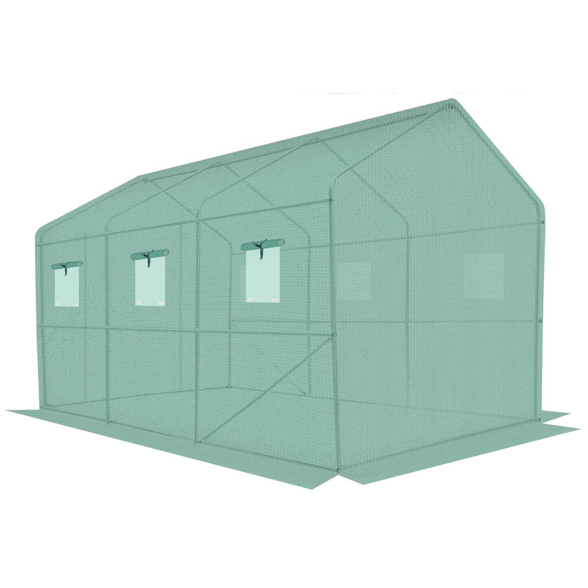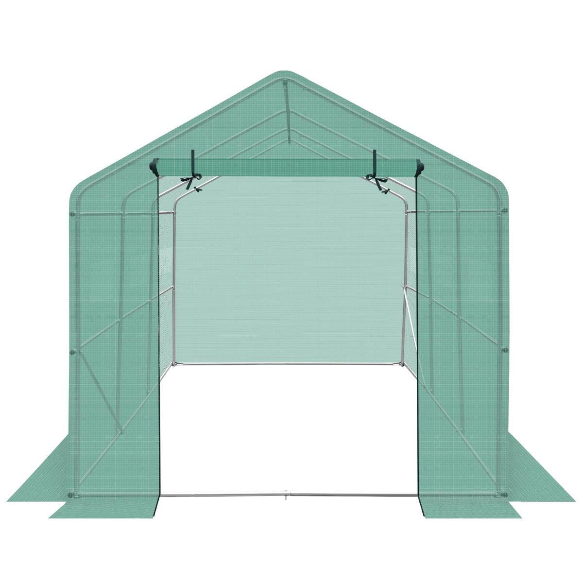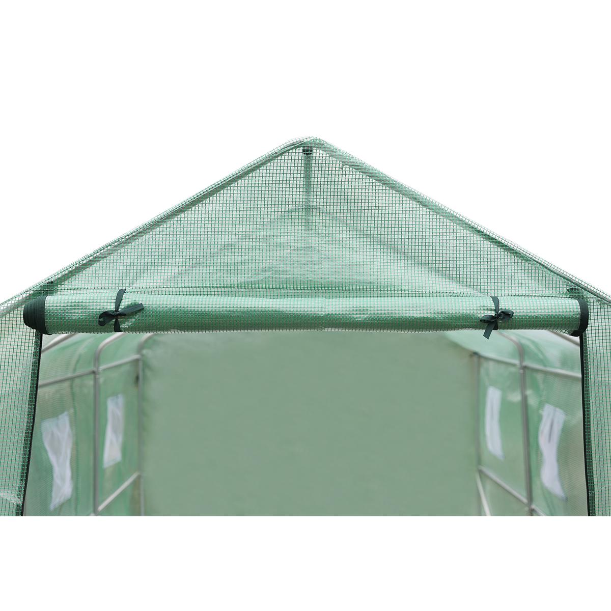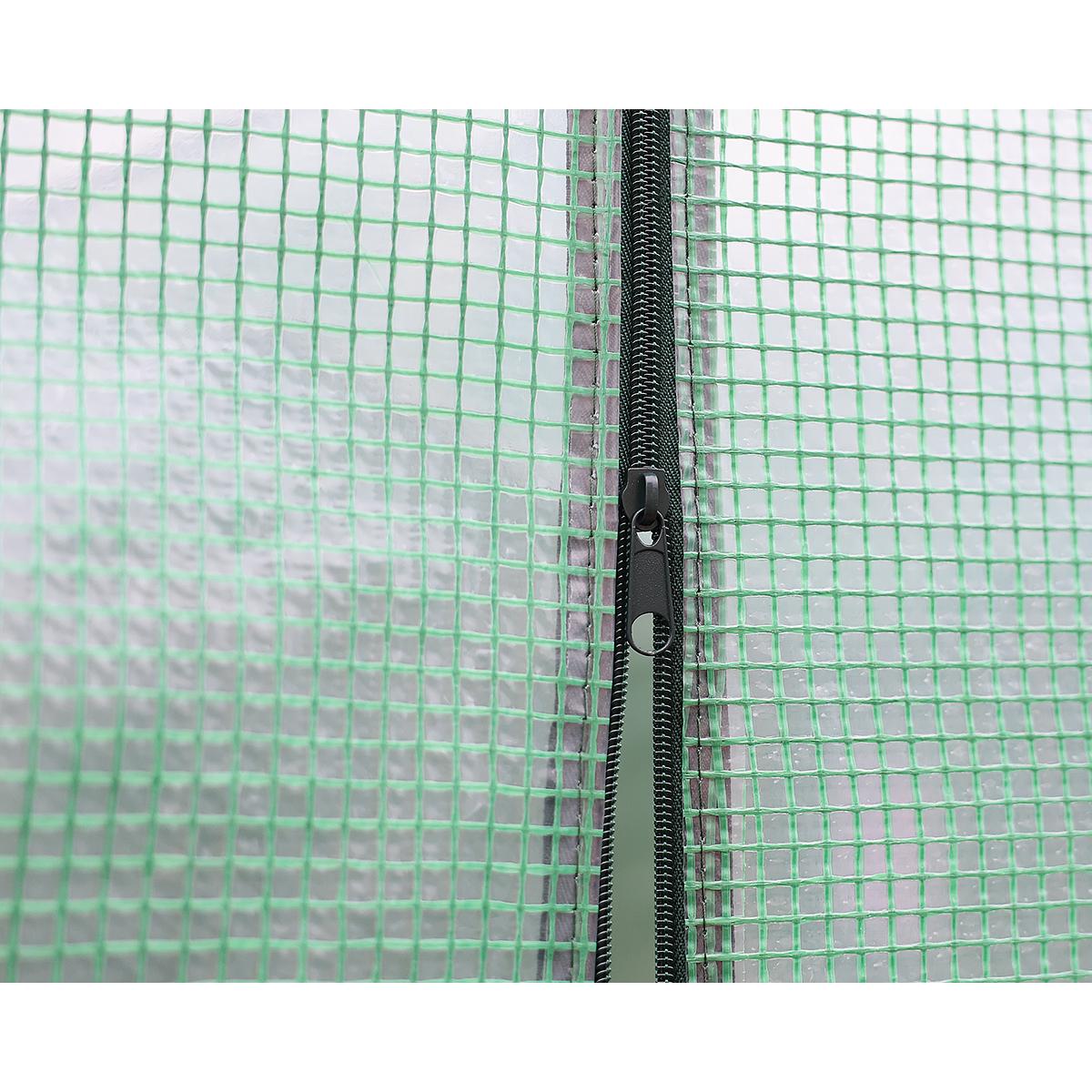 The greenhouse has been thoughtfully designed. It has 6 windows with mosquito nets, lockable o open at any time from the outside, which give you the possibility to regulate the amount of light entering the tunnel and a 120 cm wide comfortable door, closed with a zipper.