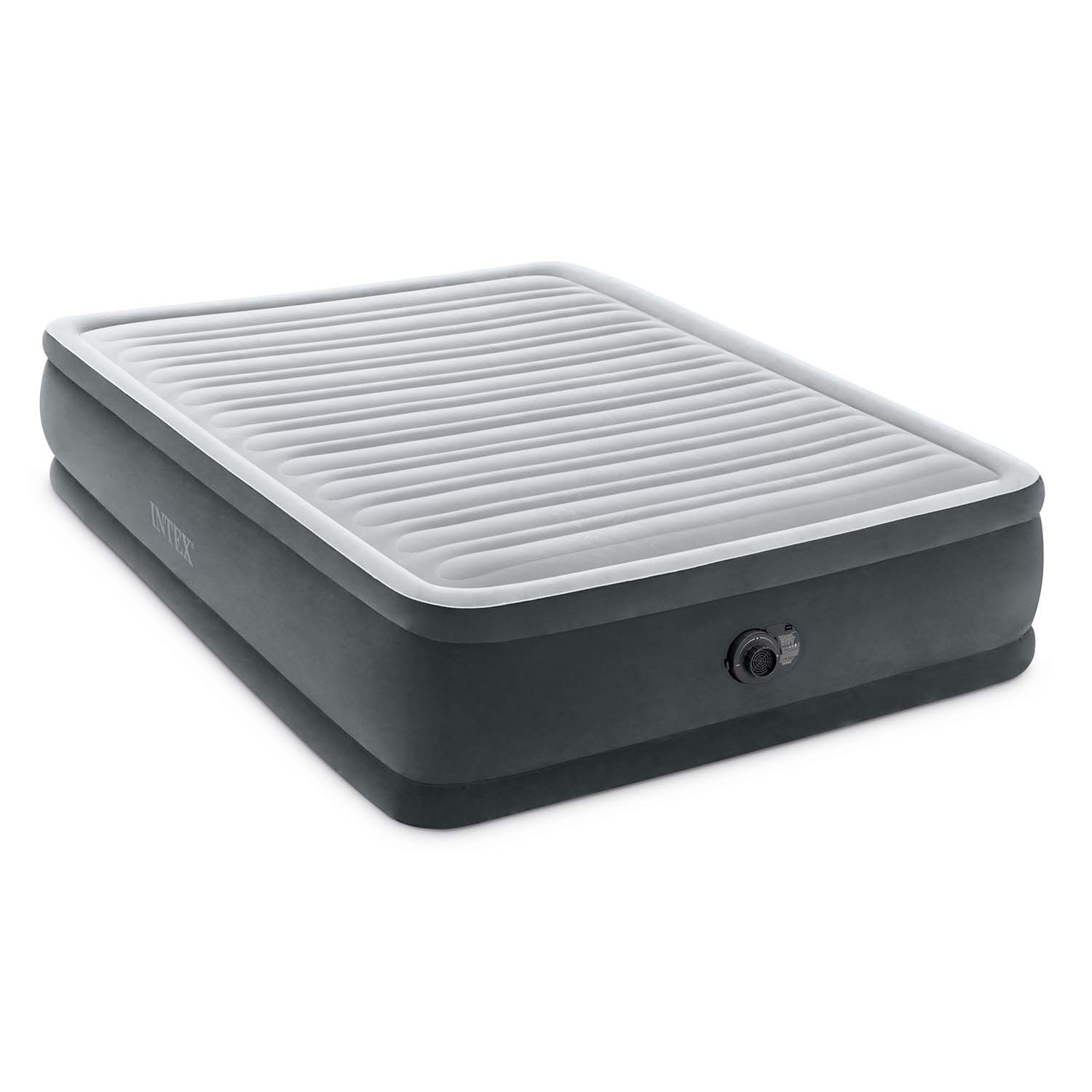 INTEX velour mattress (203x152x46 cm) is perfect for two people. It is made of durable PVC and covered with soft, waterproof velour on top. The pleasant blue-grey color matches all types of interiors. Thanks to the built-in electric pump, the mattress inflates in just 3 minutes and deflates in 1 minute, making it quick and easy to fold and store.