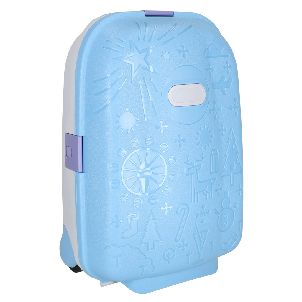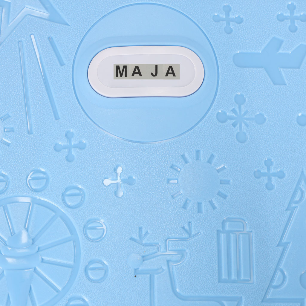 Own suitcase is perfect for any little traveler ready for new adventures! Blue color and interesting patterns will catch the child’s attention, and maybe even encourage him to pack on his own. The set additionally includes stickers for signing the luggage.
