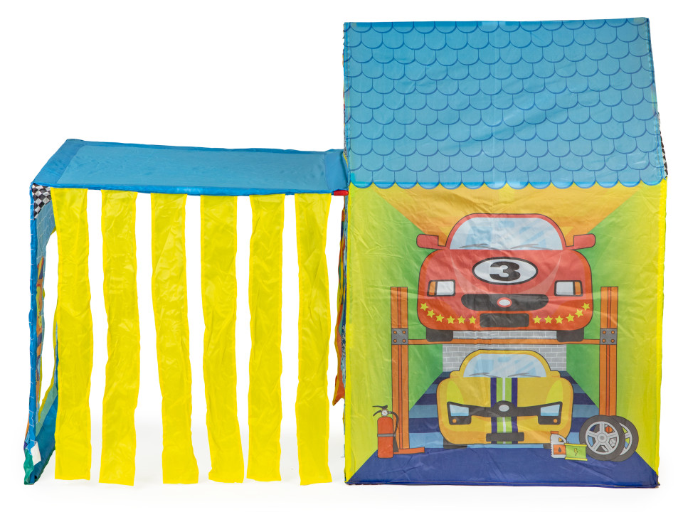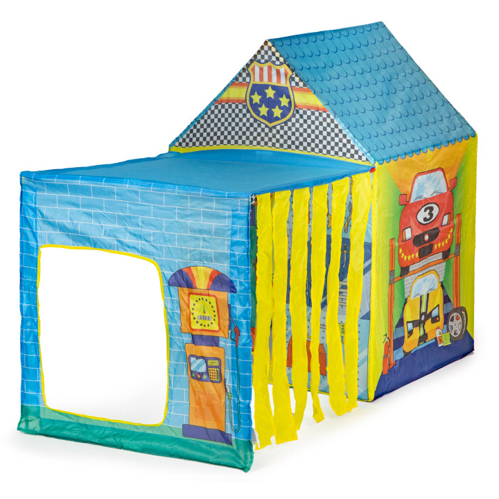 The tent consists of a house connected to a canopy, all styled as a car repair shop, car wash, and gas station. Every little car enthusiast will be able to play the role of a mechanic, and the fun will never end.