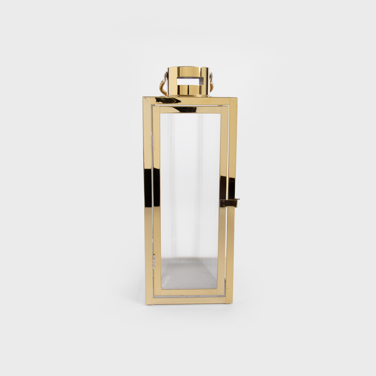 Lantern | TONDO | gold with striped glass | 14x14x39 cm | 705083