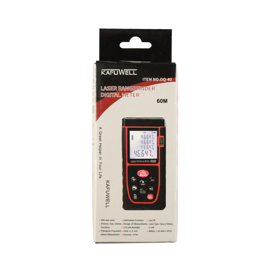Laser rangefinder digital distance meter waterproof IP54 3mm/60m case battery power KAFUWELL
