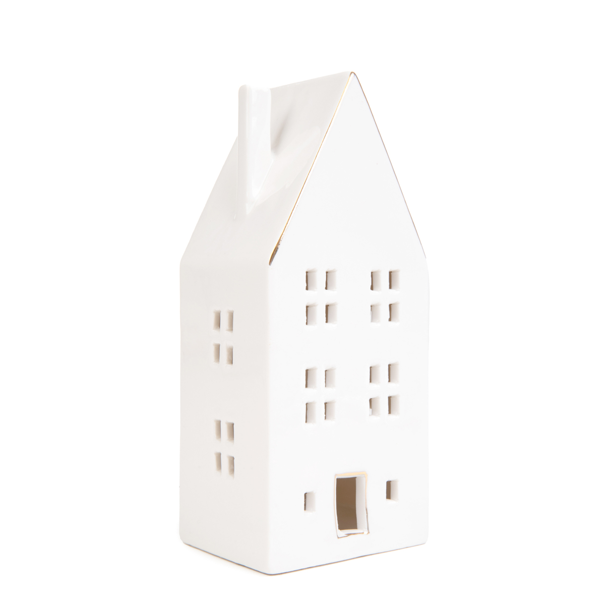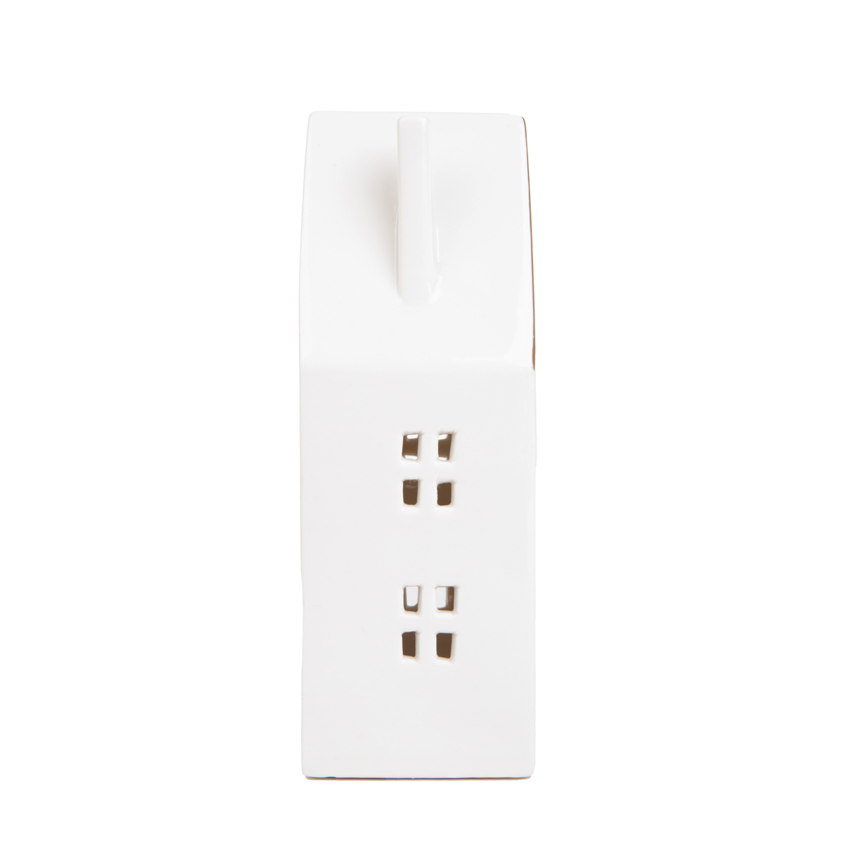 The luminous HOMLA KANIA house is a festive decoration that will create a unique atmosphere in your home. When the leds are switched on, a cosy glow comes out through the windows of the cottage, which brilliantly brightens up the space. The white ceramics have been decorated with subtle additions in the form of gold lines, which beautifully highlight the roof and door, adding elegance and style to the cottage.