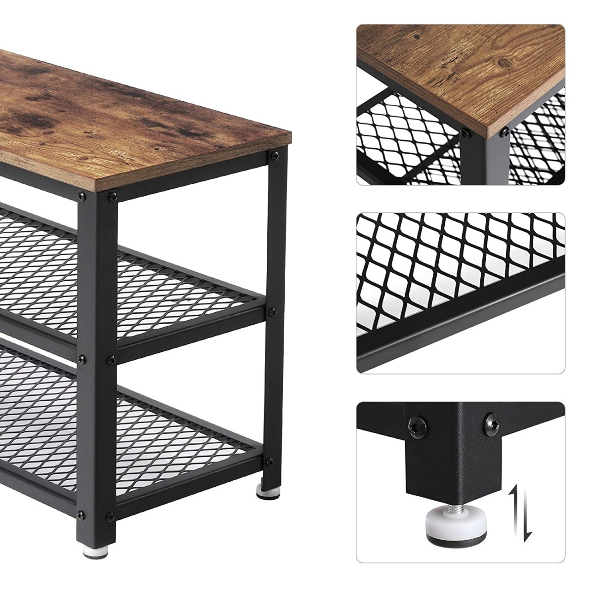 An industrial shoe rack with a seat is a very practical and elegant piece of furniture that will find its place in a hall, corridor, office, reception, hall or in a store.