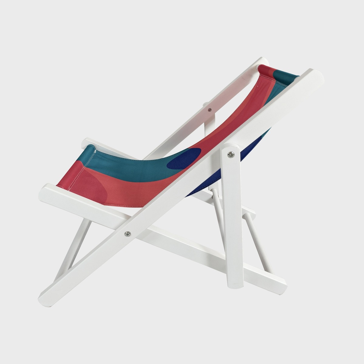 The COLOR FIESTA lounger is a designer accessory that attracts attention not only with its form, but also with its intense, colorful pattern. The white wood frame blends beautifully with the colorful fabric to create a cohesive whole. It will be ideal for creating an atmospheric corner on the terrace, balcony or in the garden.