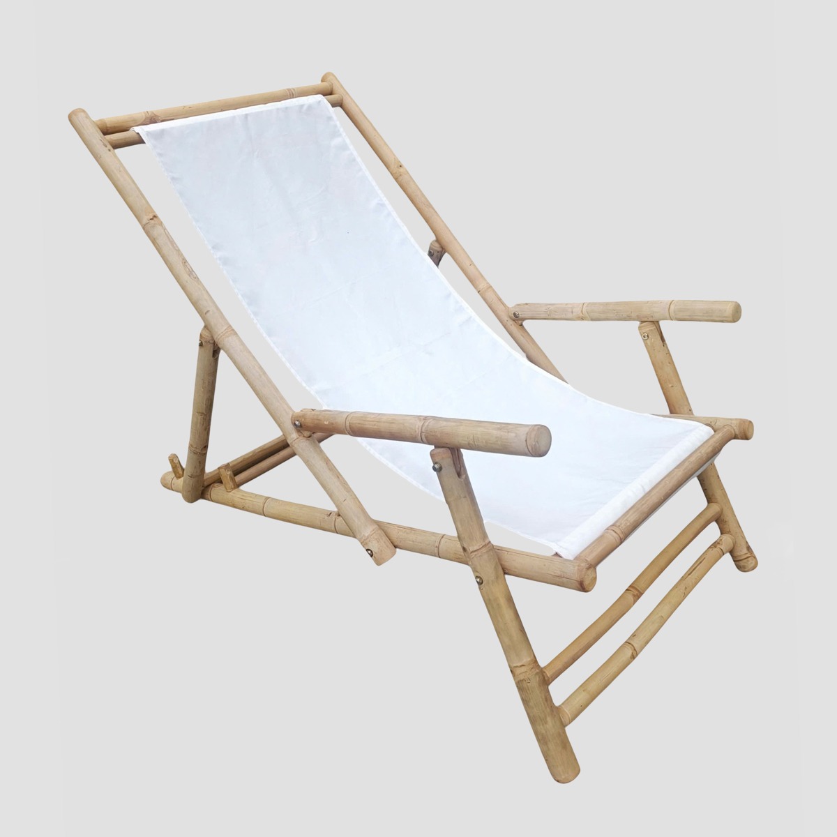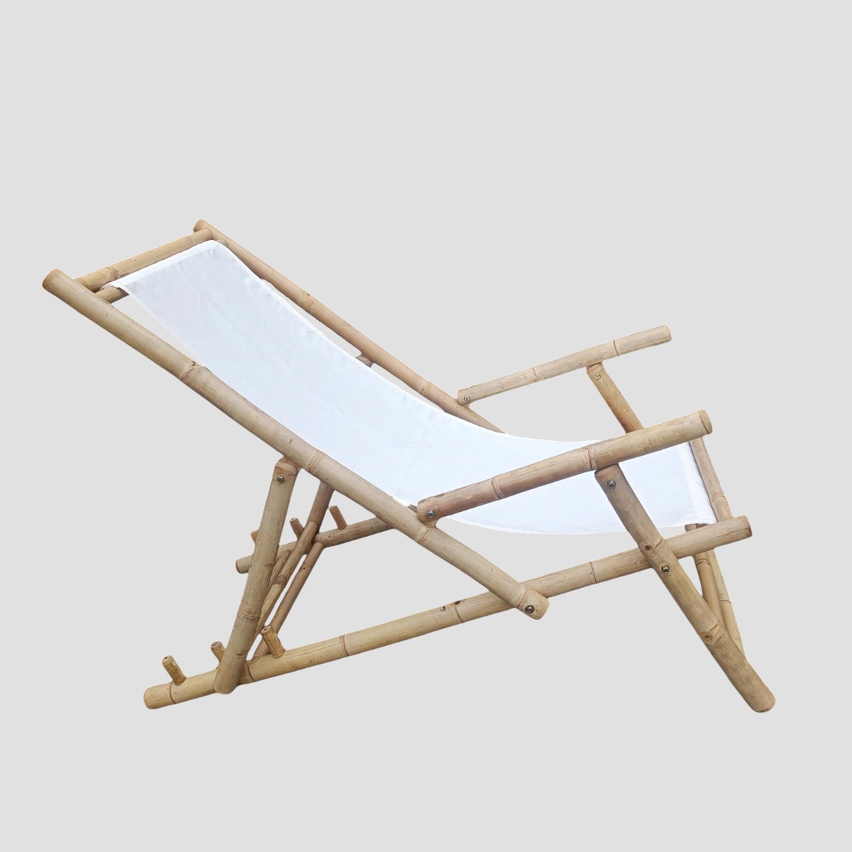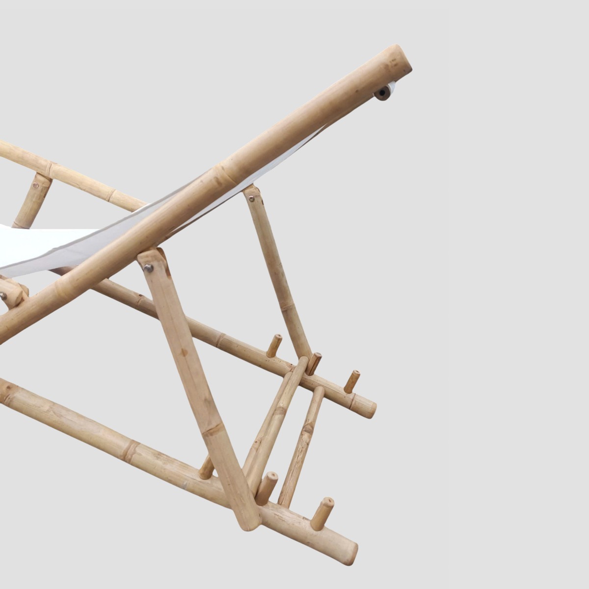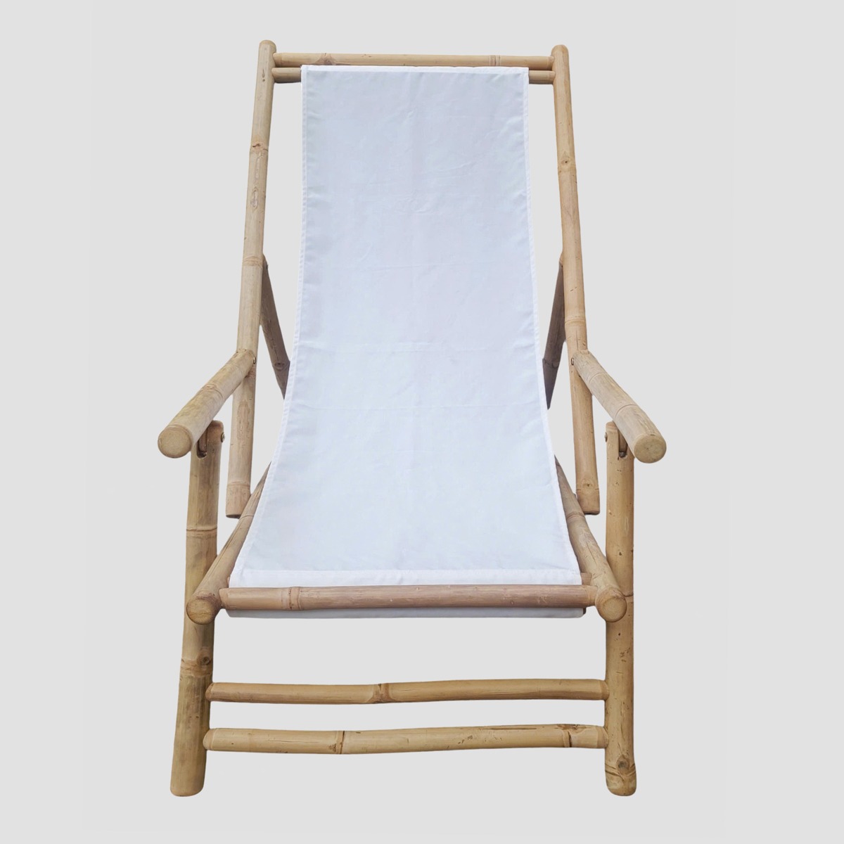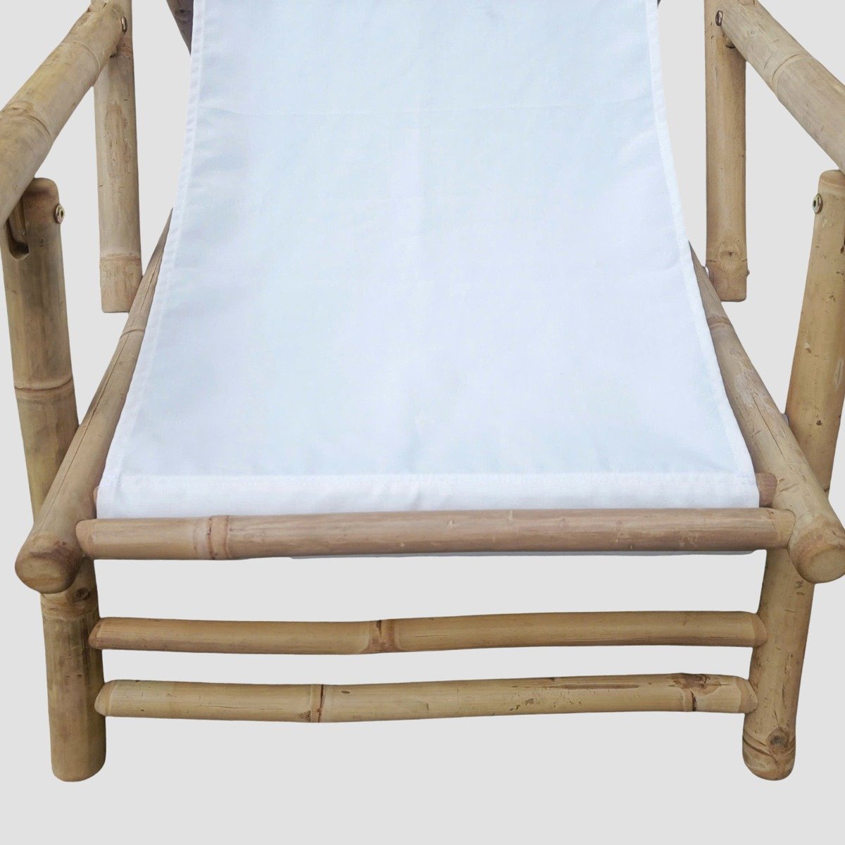 The MARE lounger in white is the essence of summer minimalism. The light-colored material contrasts beautifully with the natural color of the bamboo, creating a stylish ensemble that will fit perfectly into both modern and classic arrangements.
