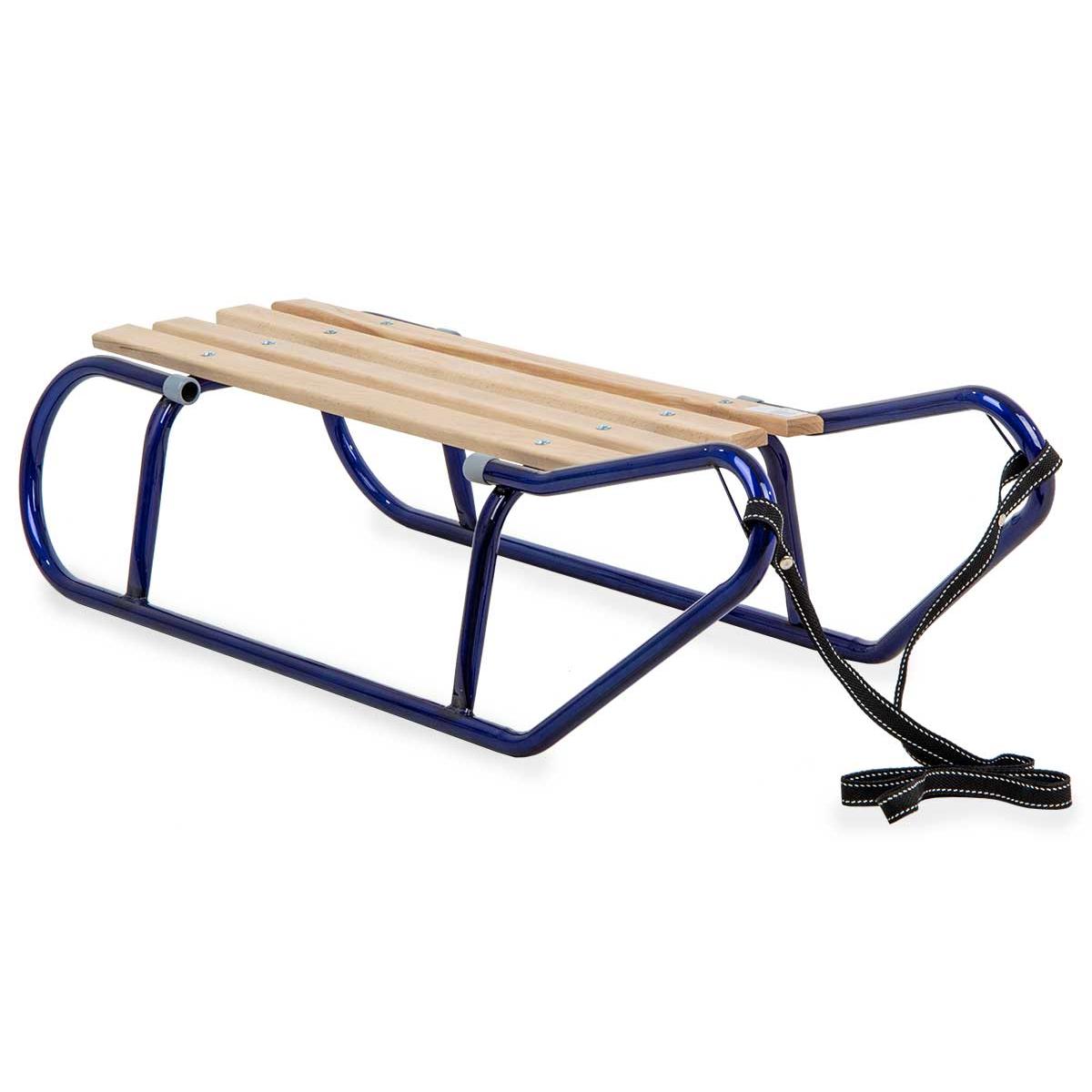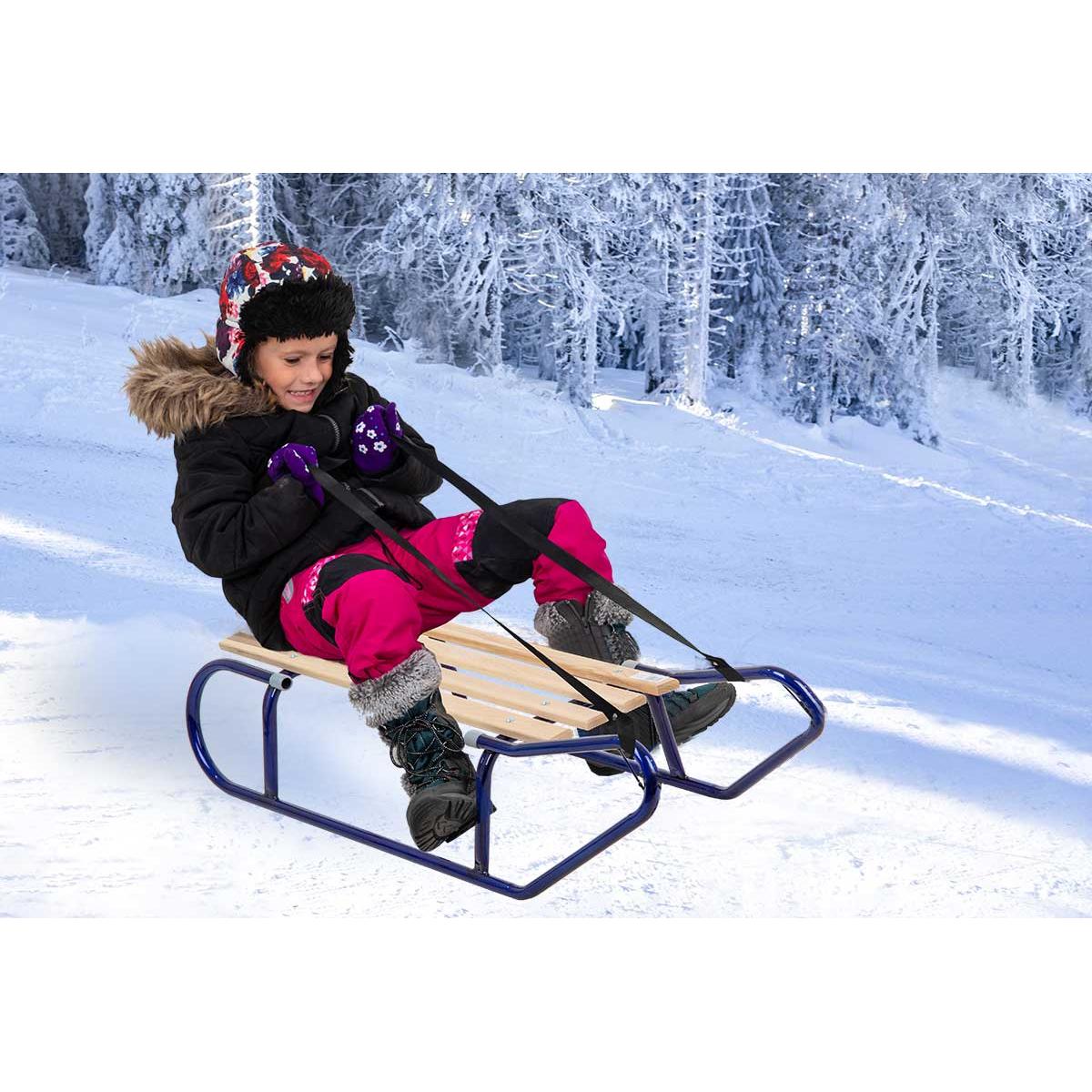 Steel and solidly bolted skids and wooden elements protected with the appropriate impregnation will give you the feeling of a very well made decision to buy them. Lifting capacity of 100 kg, will allow you or 2 of your children to slide at the same time. Equipped additionally with a long thick pull strap, which will make it easier to walk or pull the sled up the hill.