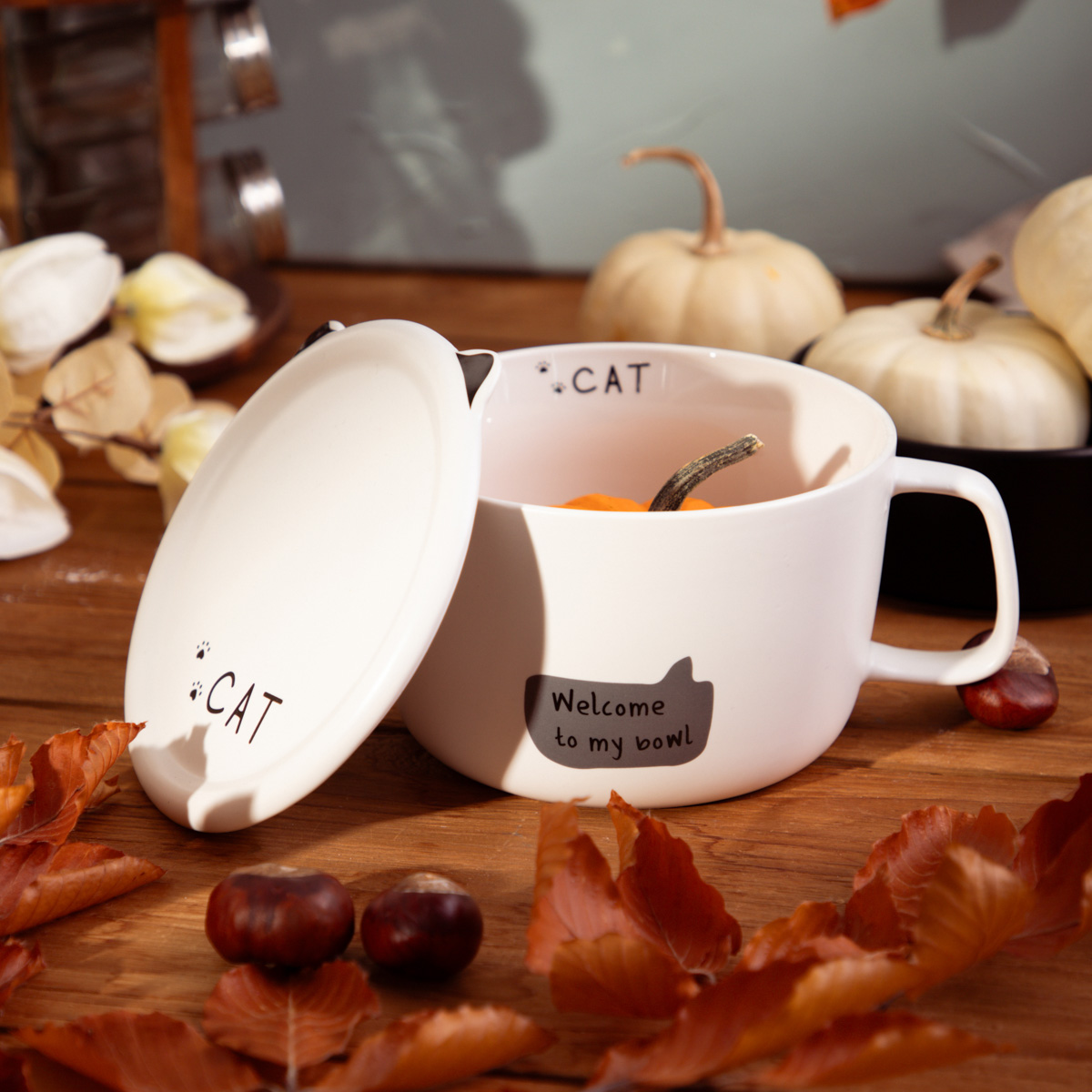 Mug | KATIS | with cat and porcelain lid | 0.9 l | 707995