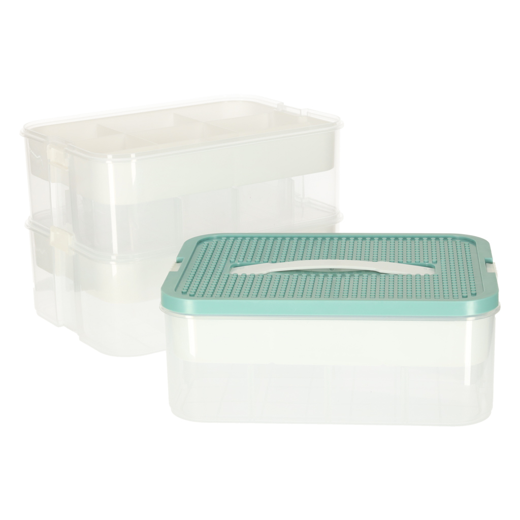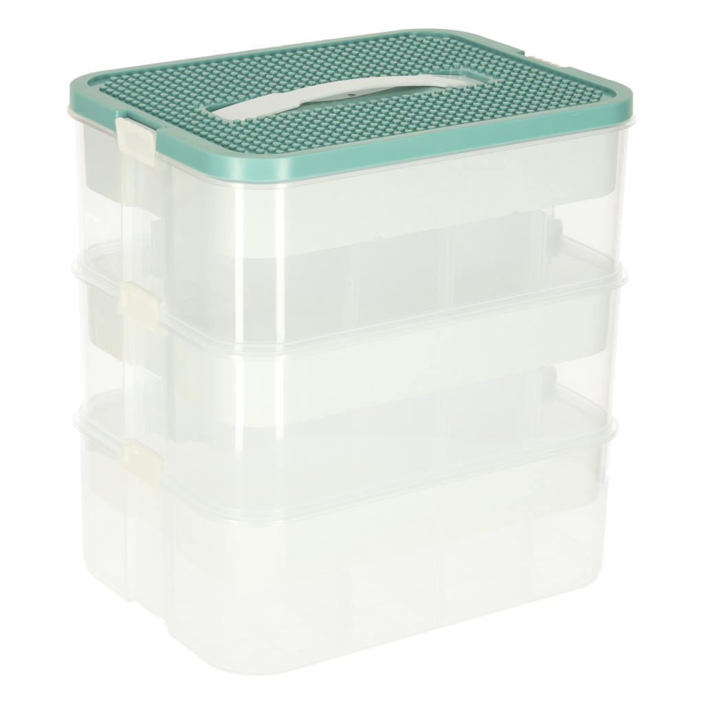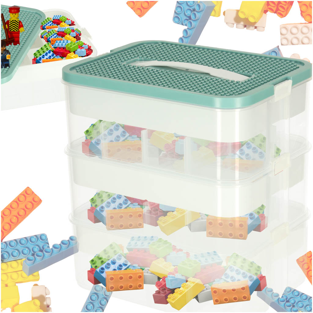 ORGANIZER BOX CONTAINER WITH 3 TIERS FOR BLOCKS.