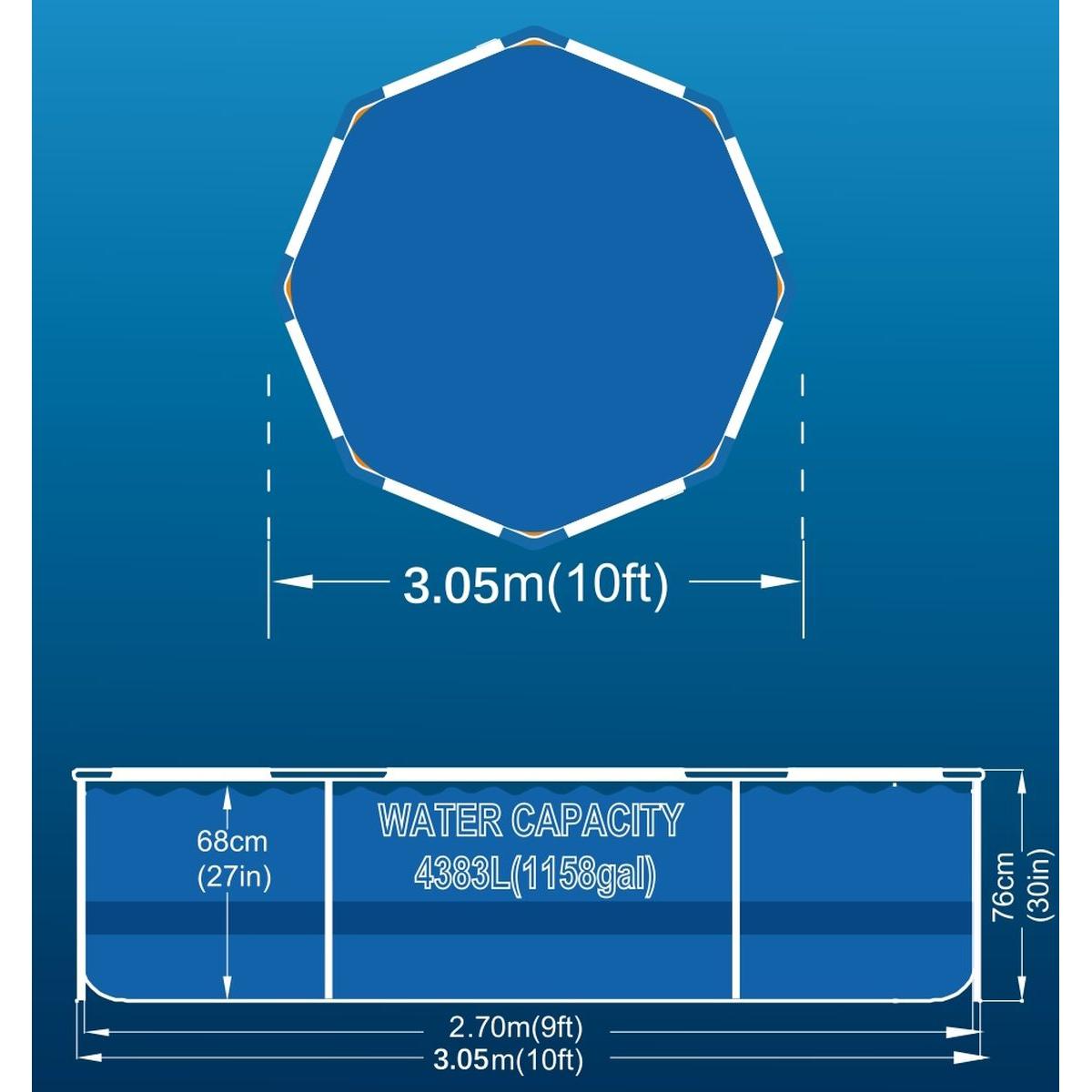 OVERHEAD BASIN 300X76CM 17798 is an ideal solution for everyone who wants to create in their garden a comfortable zone of relaxation and water fun. With its sturdy steel frame, durable PVC material and compatibility with filtration systems, it provides long-lasting durability and comfortable use.