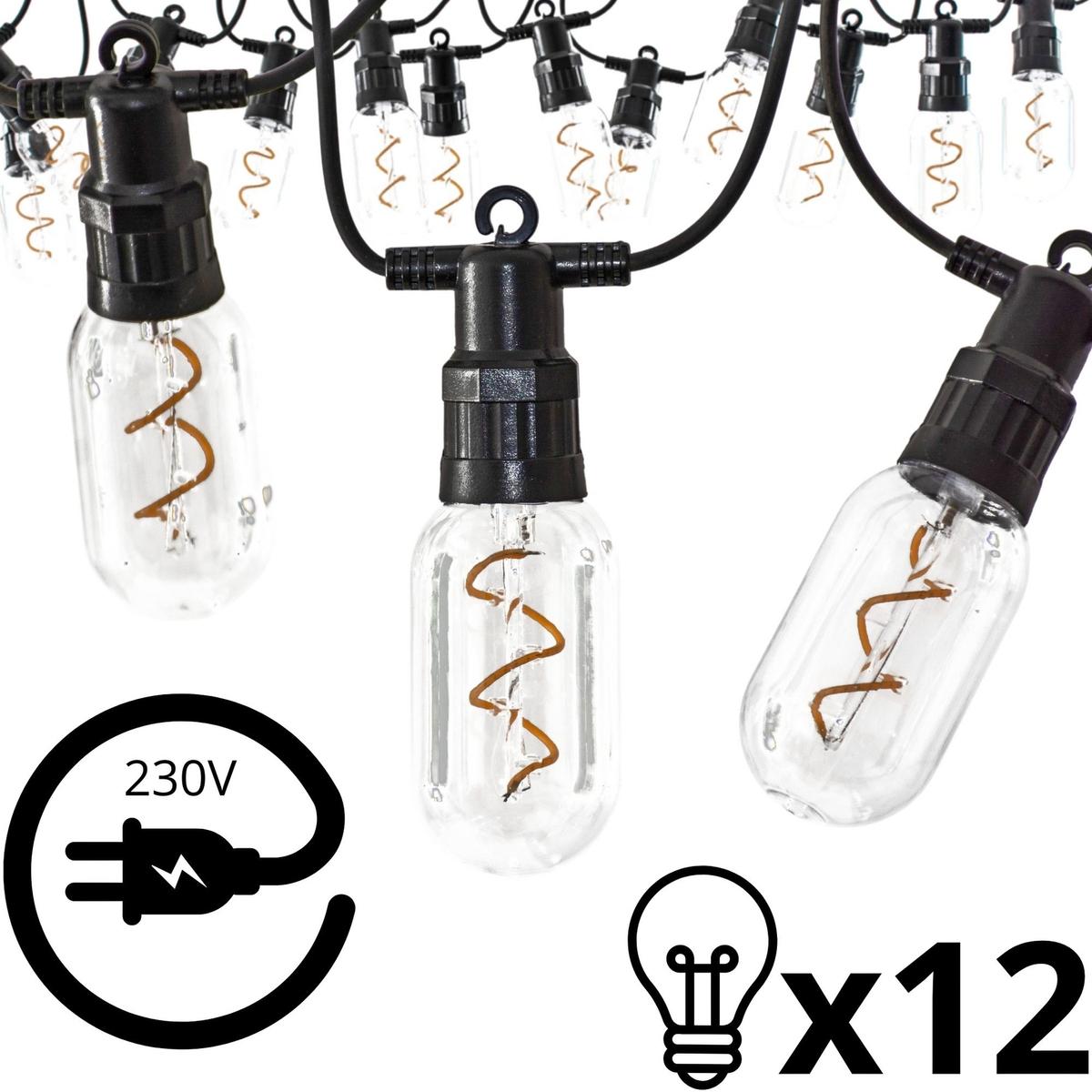 PARTY LIGHT OUTDOOR GARLAND 12LED SPIRAL BULBS 6.3M 230V
