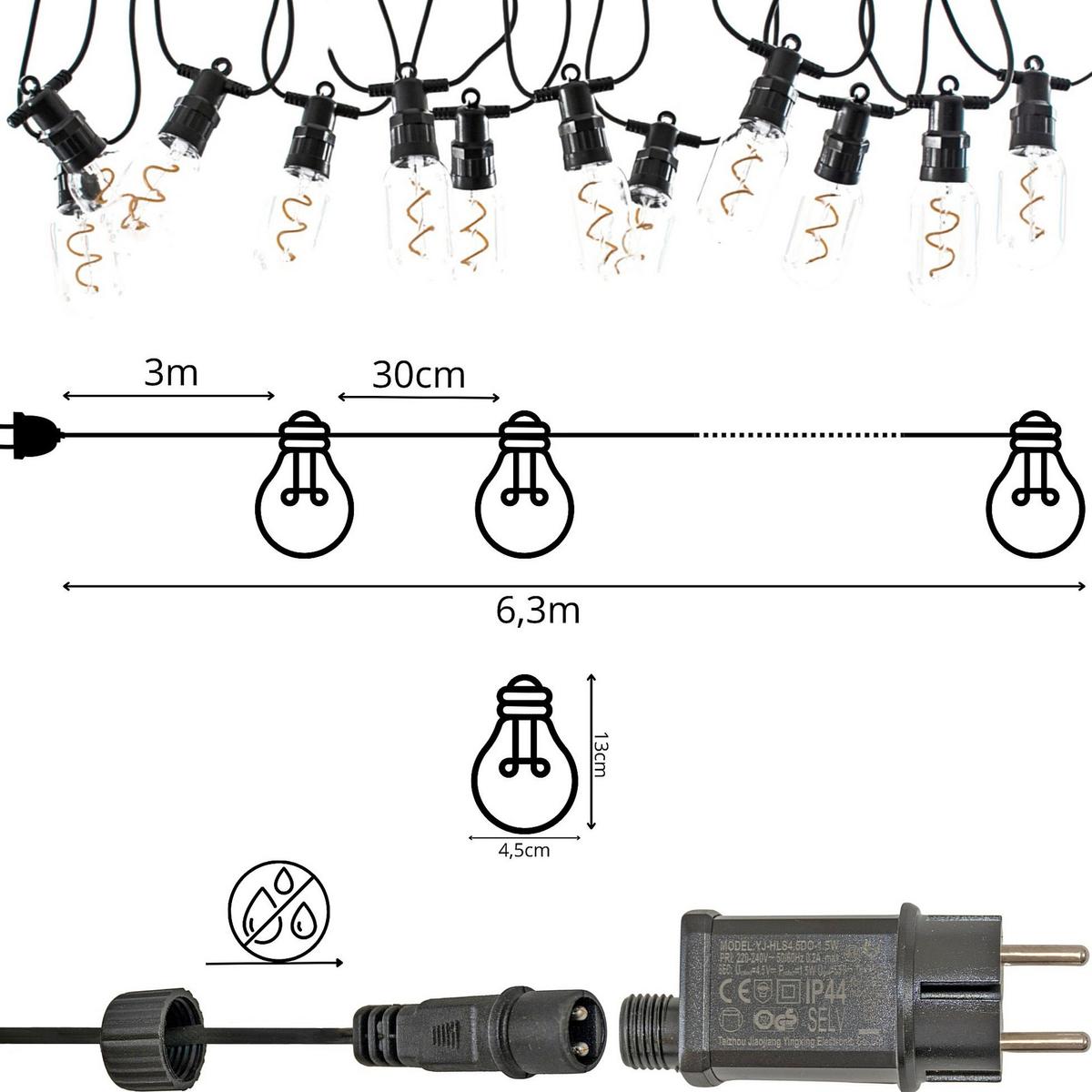 - long garland (6.3 m) with optimal bulb spacing (30 cm) – ideal for illuminating spaces