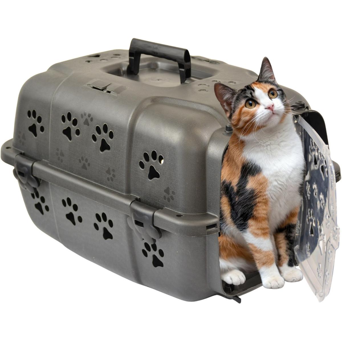 This sturdy plastic carrier will provide your pet with much more comfort and safety than an unstable bag made of material, in addition, it will easily fit on the back seat or in the trunk.