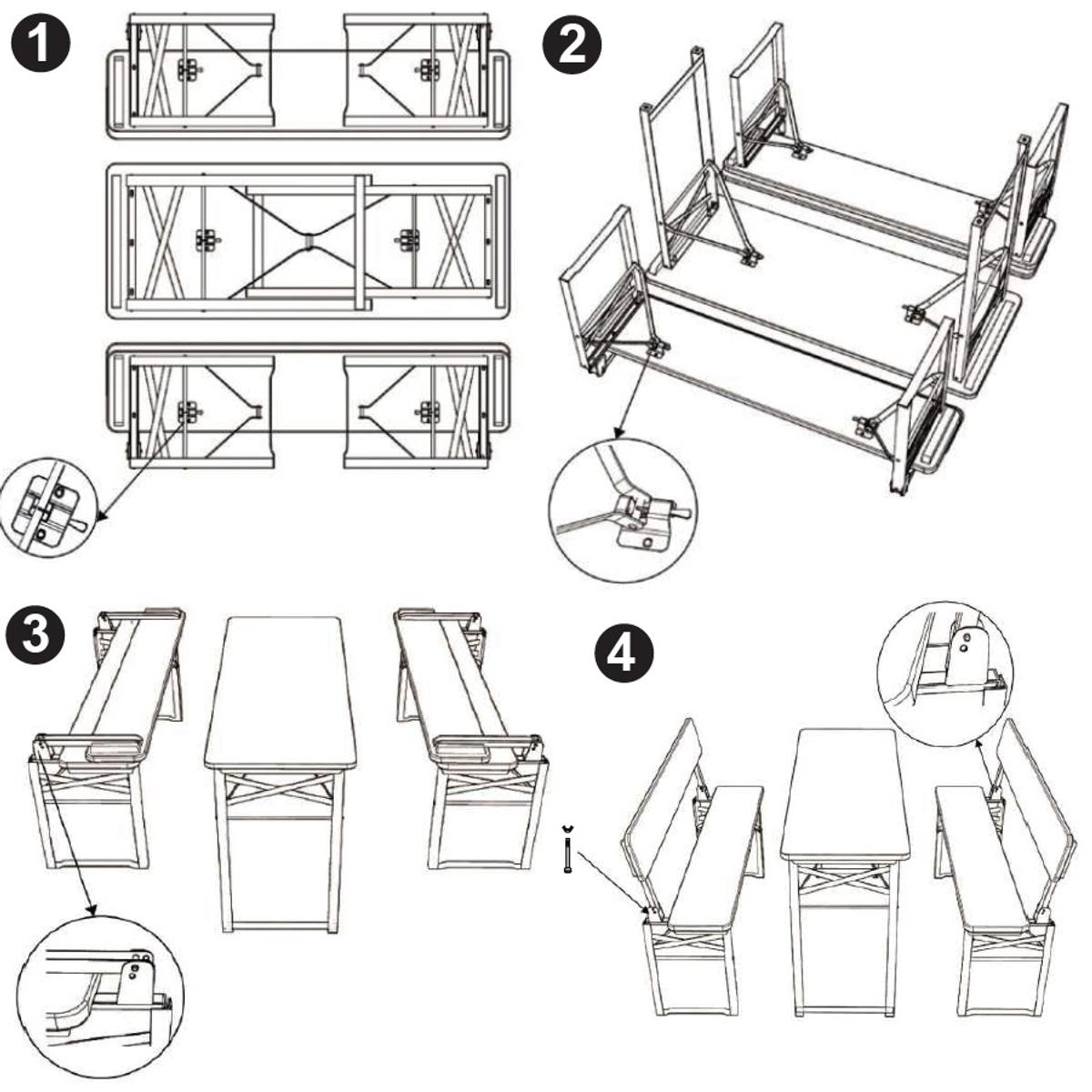 The entire set, i.e. the table and 2 benches, is designed to take up little space when folded, making it easy to store and transport. In addition, special locks in the frames will take care of your safety during use.