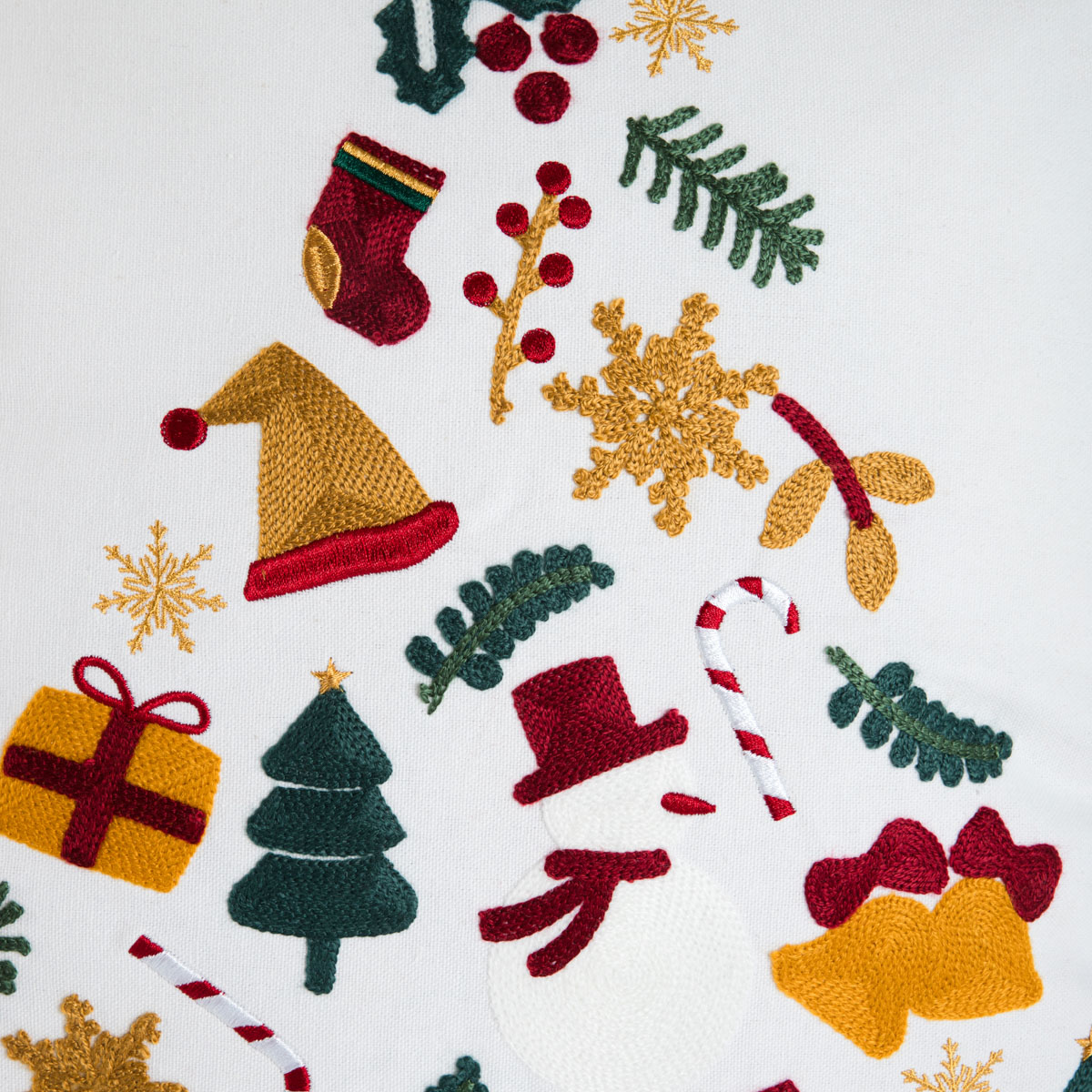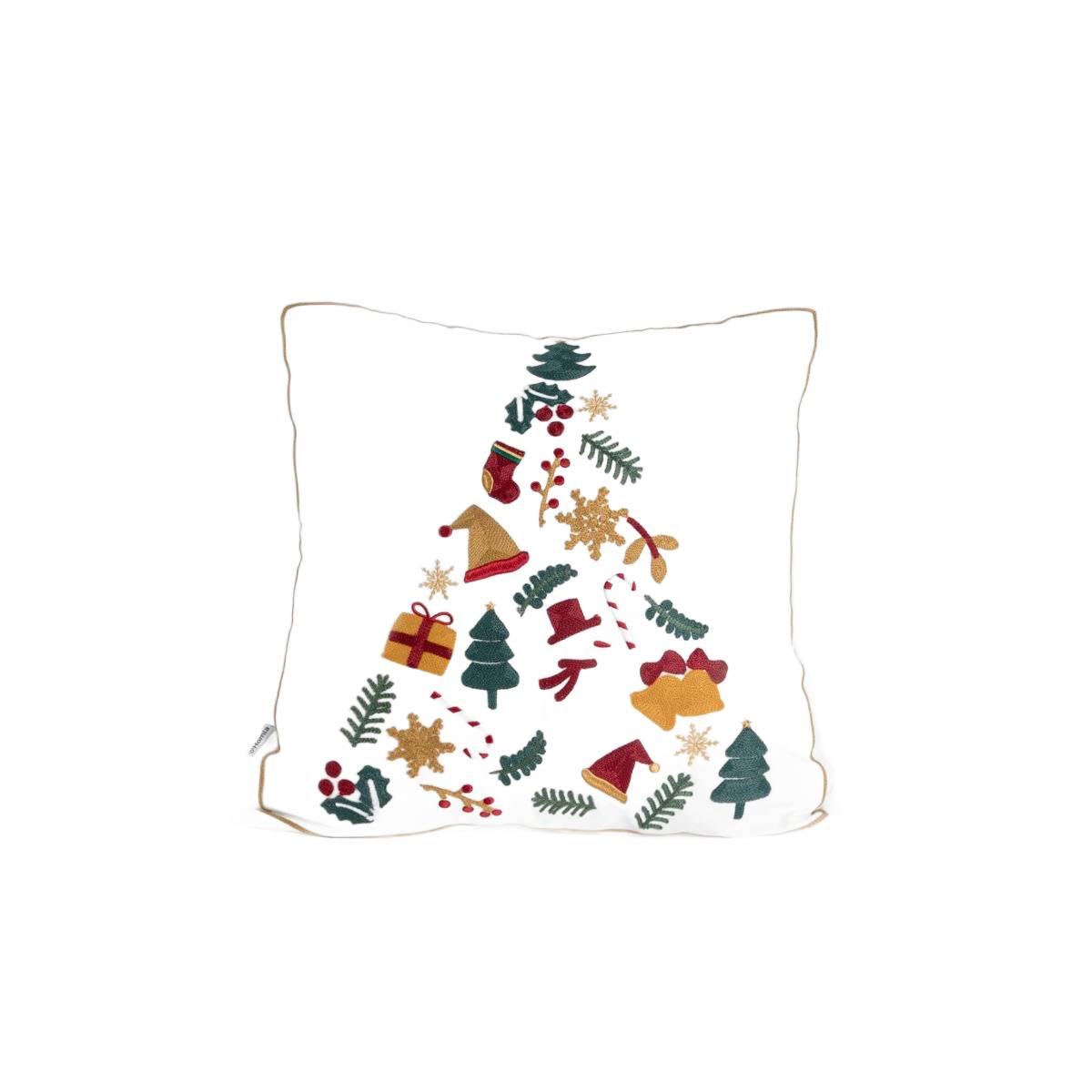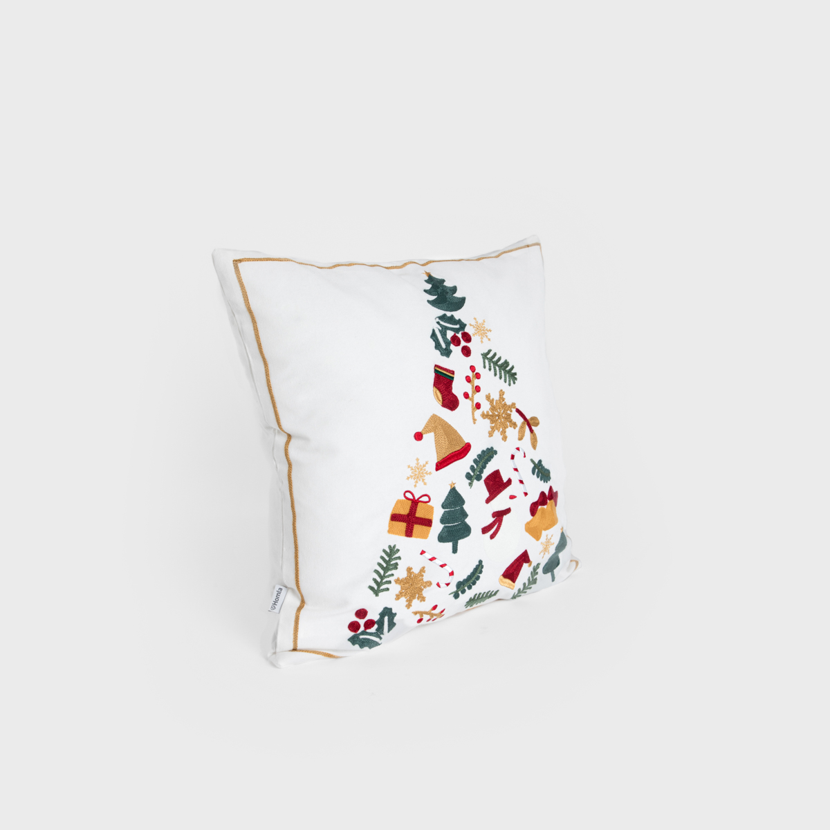 The ANTRES pillowcase evokes the magic of Christmas with its rich embroidered details arranged in the shape of a Christmas tree. Symbolic ornaments – from presents to baubles to stars – create a unique design that breathes warmth and joy into any interior. The pillowcase in the shade of white with a delicate gold trim fits perfectly into Christmas arrangements, combining tradition with elegance.