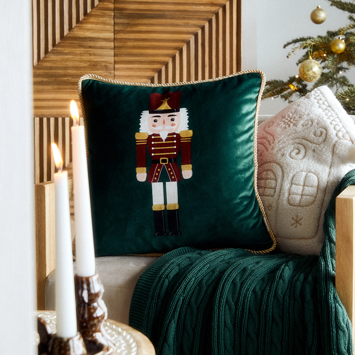 The NUTCRUCKER small cushion cover is ideal as part of a festive interior design. You can use it on the sofa in the living room, on the armchair or on the bed in the bedroom. It will look great in the company of a warm blanket and other decorative cushions, creating a dream space to relax after a Christmas feast or a winter walk.