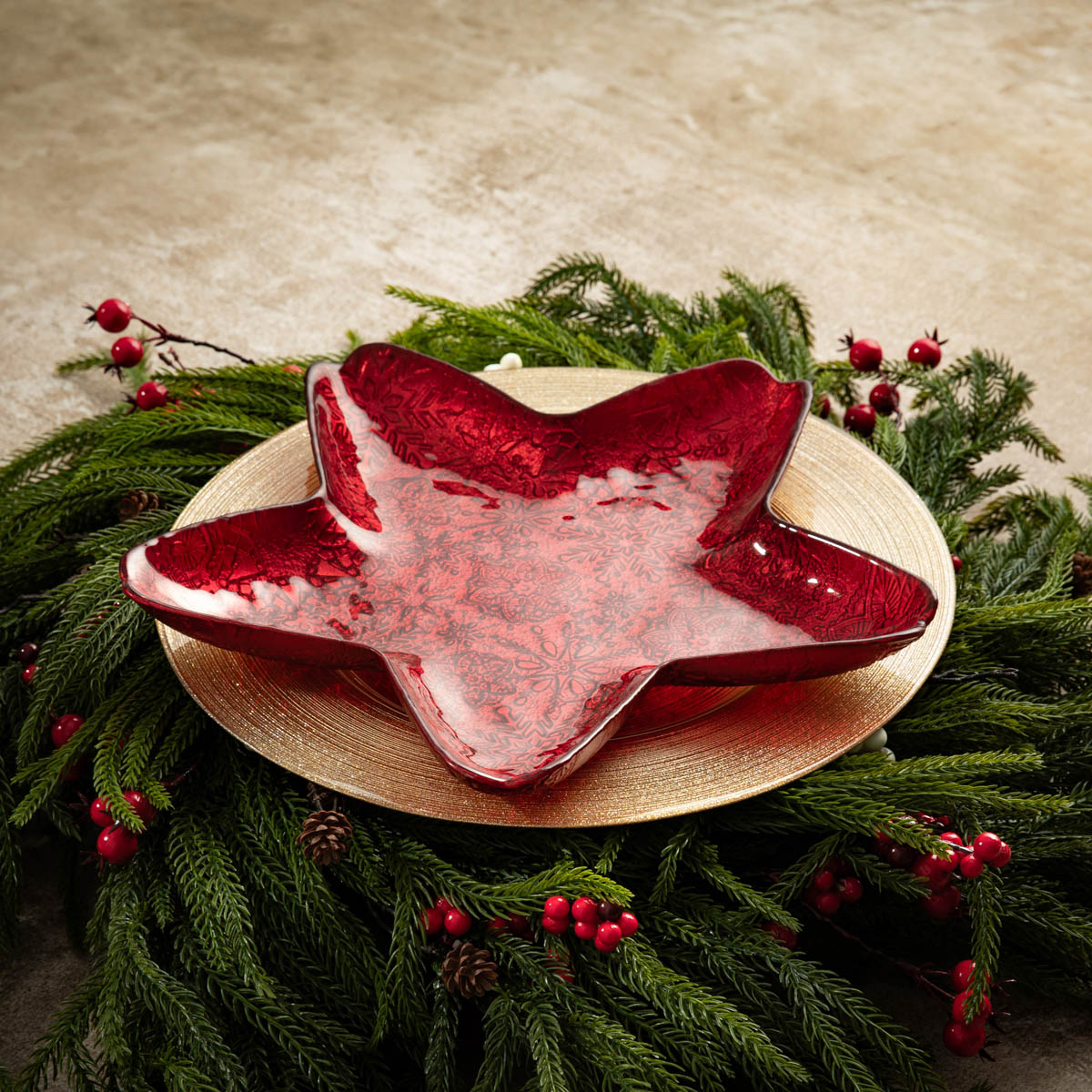 The BLITS plate is a unique decoration that will add a festive touch to your table. The intense red color and delicate patterns give it an elegant touch, making it the perfect choice for Christmas Eve and Christmas parties. Thanks to its large size, it is perfect for serving cakes, snacks or decoratively arranging fruit.