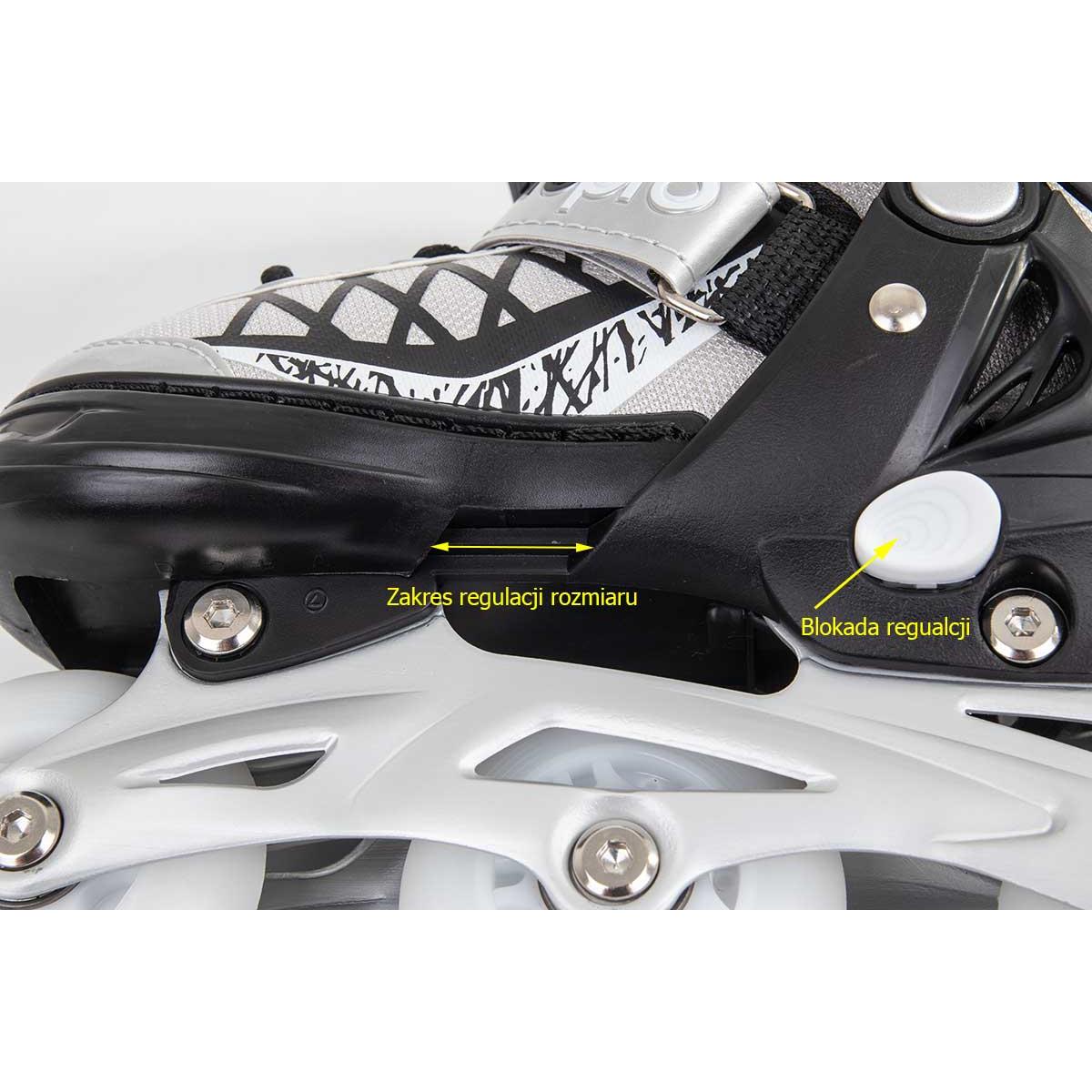 Skates – roller skates – rollerblades – skates 4W1 ENERO PRO LED are characterized by very good riding properties. This is due to lightweight aluminum skids and a reliable system of 3 fasteners, consisting of an adjustable Quick Lock buckle, Velcro strap and laces, firmly holding the feet. All this makes this model perform well in all conditions, providing a unique riding experience in all 4 forms. Their high quality guarantees durability and resistance to mechanical damage. Skates – roller skates – skates 4W1 ENERO PRO LED guarantee pure riding pleasure.