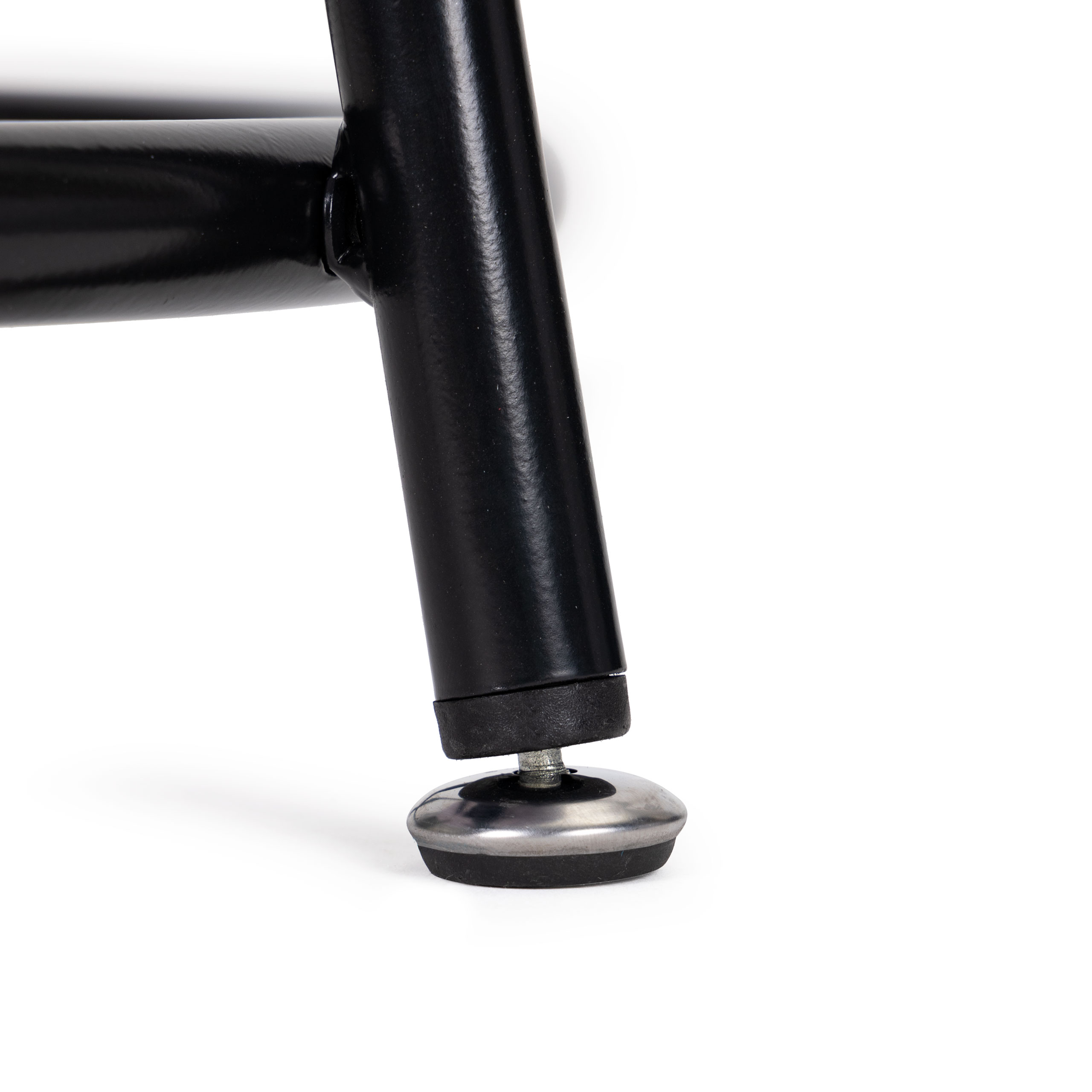 The table has a stable frame made of metal, which has been powder coated. The top and shelves are made of chipboard and covered with veneer imitating wood. The legs are finished with special, movable feet that will allow for perfect leveling of the table and protect the floor from scratches.