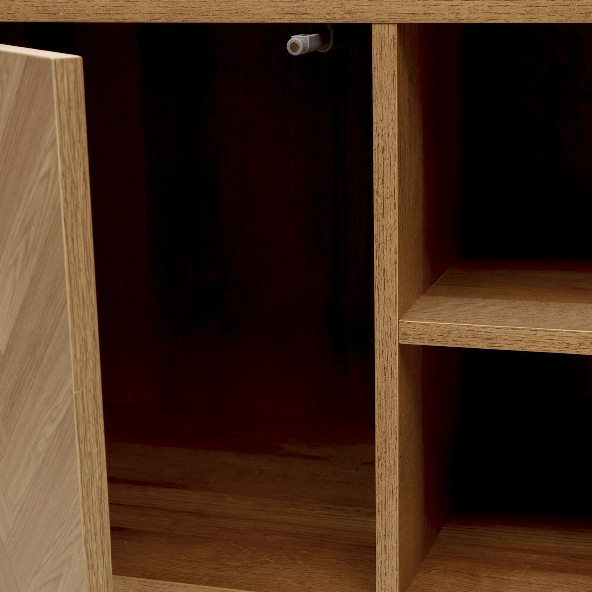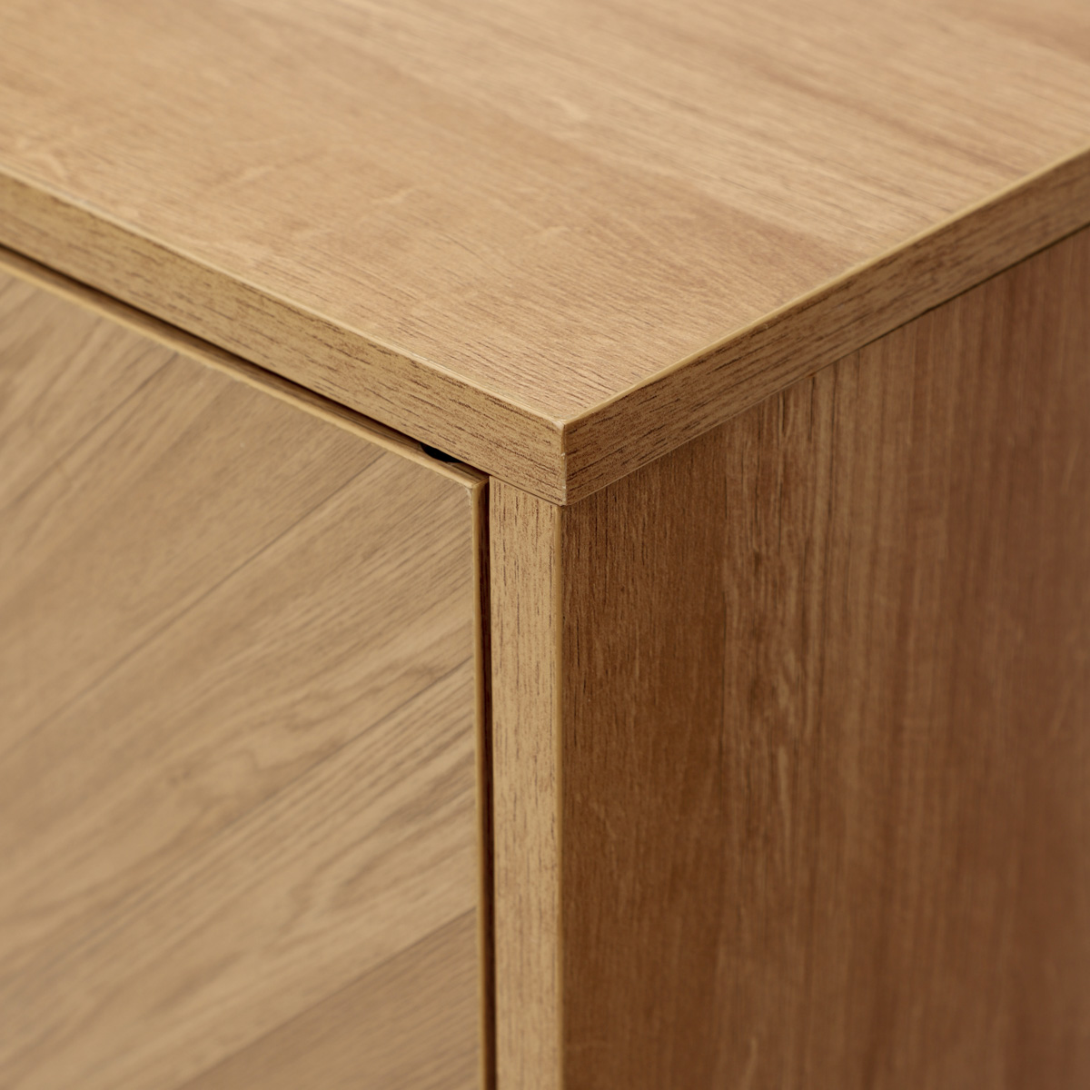 With the HOMLA SWEN TV cabinet, you will be able to display your TV and create additional storage space for all sorts of small items. The color of the furniture is natural wood, which is perfectly complemented by black metal legs. The minimalist design makes the cabinet fit perfectly into almost any interior, especially spaces inspired by Scandinavian, boho, modern or eclectic style.