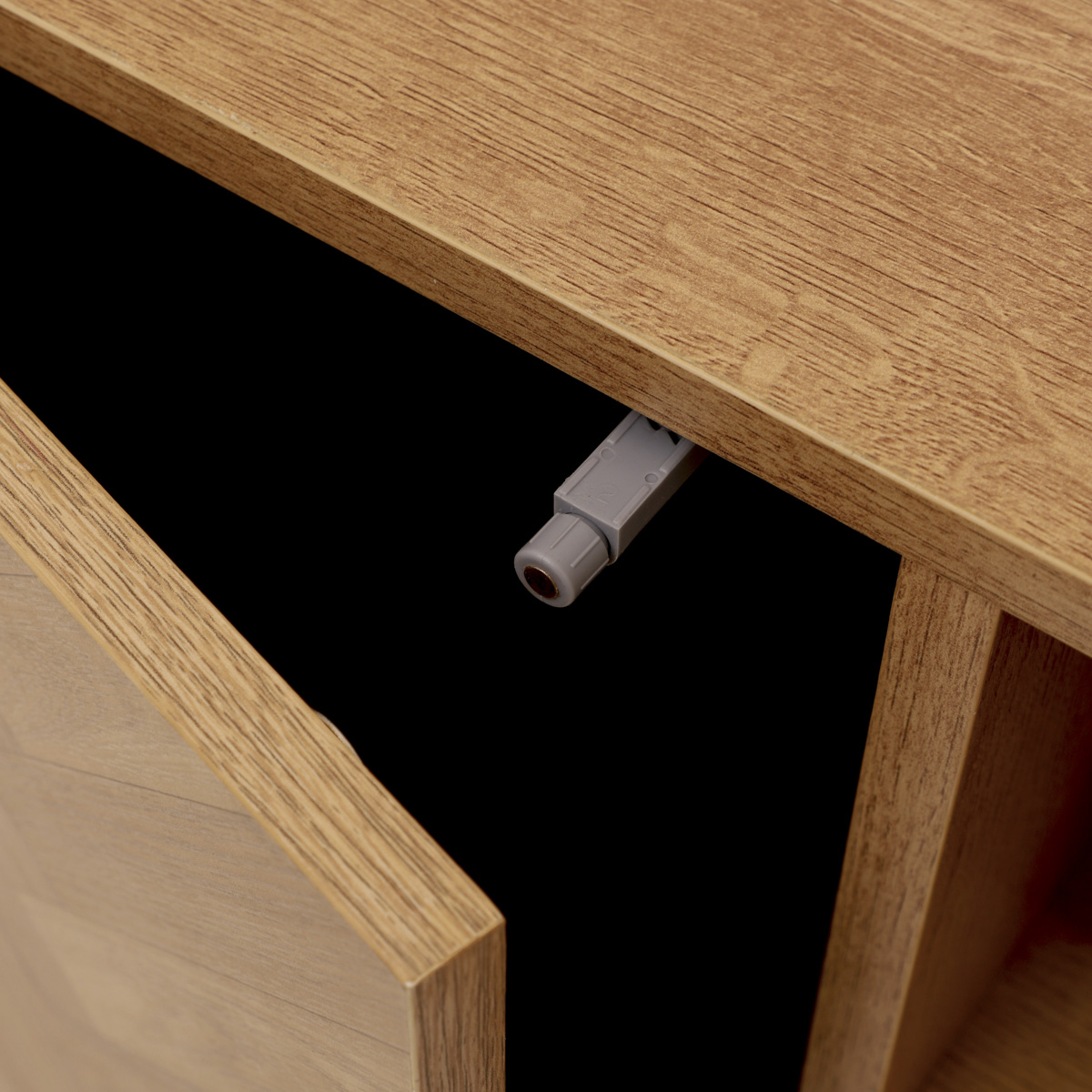 On the SWEN RTV cabinet you can place a TV, console, set top box or other equipment such as a music tower. The furniture consists of 2 cabinets and 2 shelves separating them, which create space for storing games, additional cables, smaller devices or documents. Thanks to the fact that the cupboard is on legs, it is easy to keep it tidy underneath, and you can easily reach it with a hoover or mop.