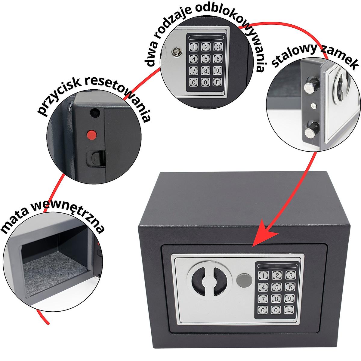 Thanks to its sturdy construction and intuitive operation, the safe is perfect for use in the home, office, hotel or store. It is perfect for storing cash, important documents, keys, jewelry, data storage media and other valuable items, protecting them from unauthorized access.