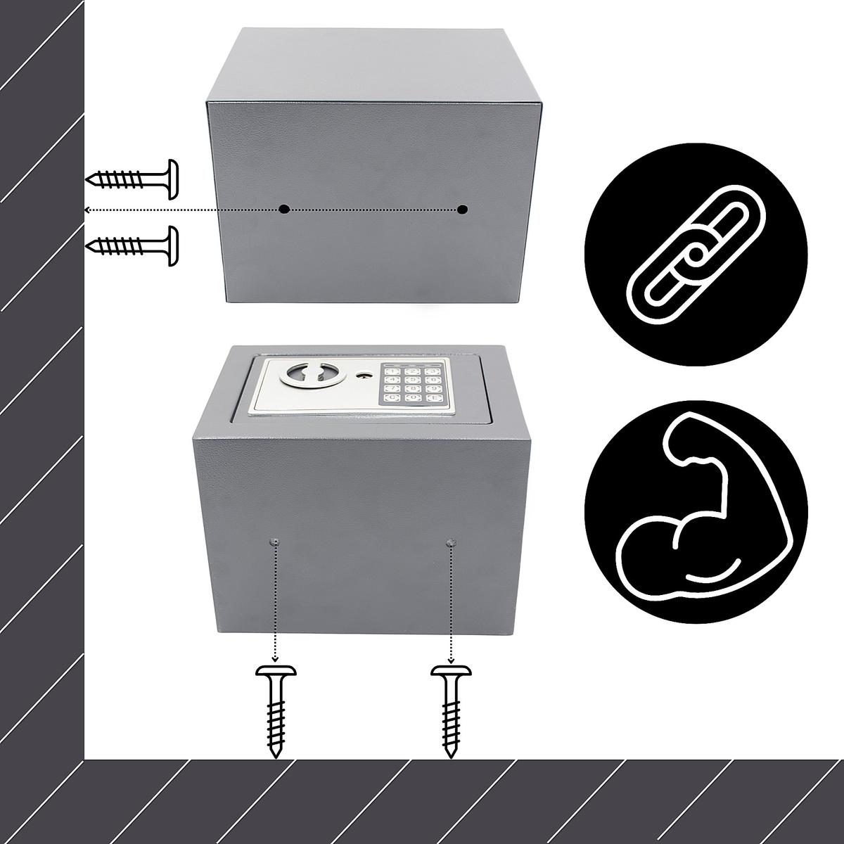 Thanks to its compact size of 23x17x17 cm, the safe can be easily placed in a closet, drawer, alcove or on a shelf for extra security. Its compact format allows for optimal space utilization, while offering enough room to store your most important items.