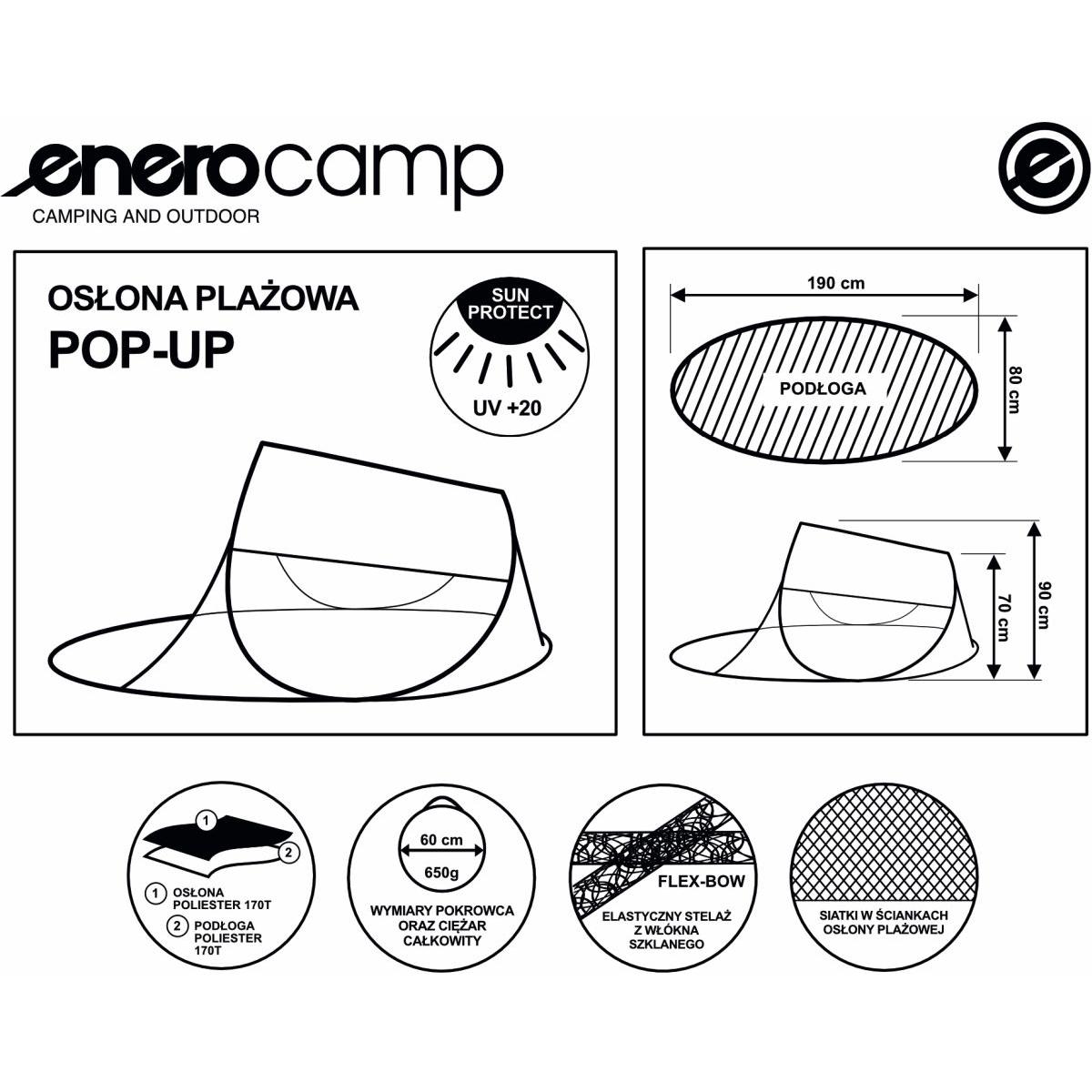 p>Planninga lazy day at the beach or lake? Make your vacation more enjoyable, hide from the scorching sun, wind and the gazes of beachgoers. Get a bit of privacy with the help of the ENERO CAMP Self-covering beach tent 190X80X90/70CM.