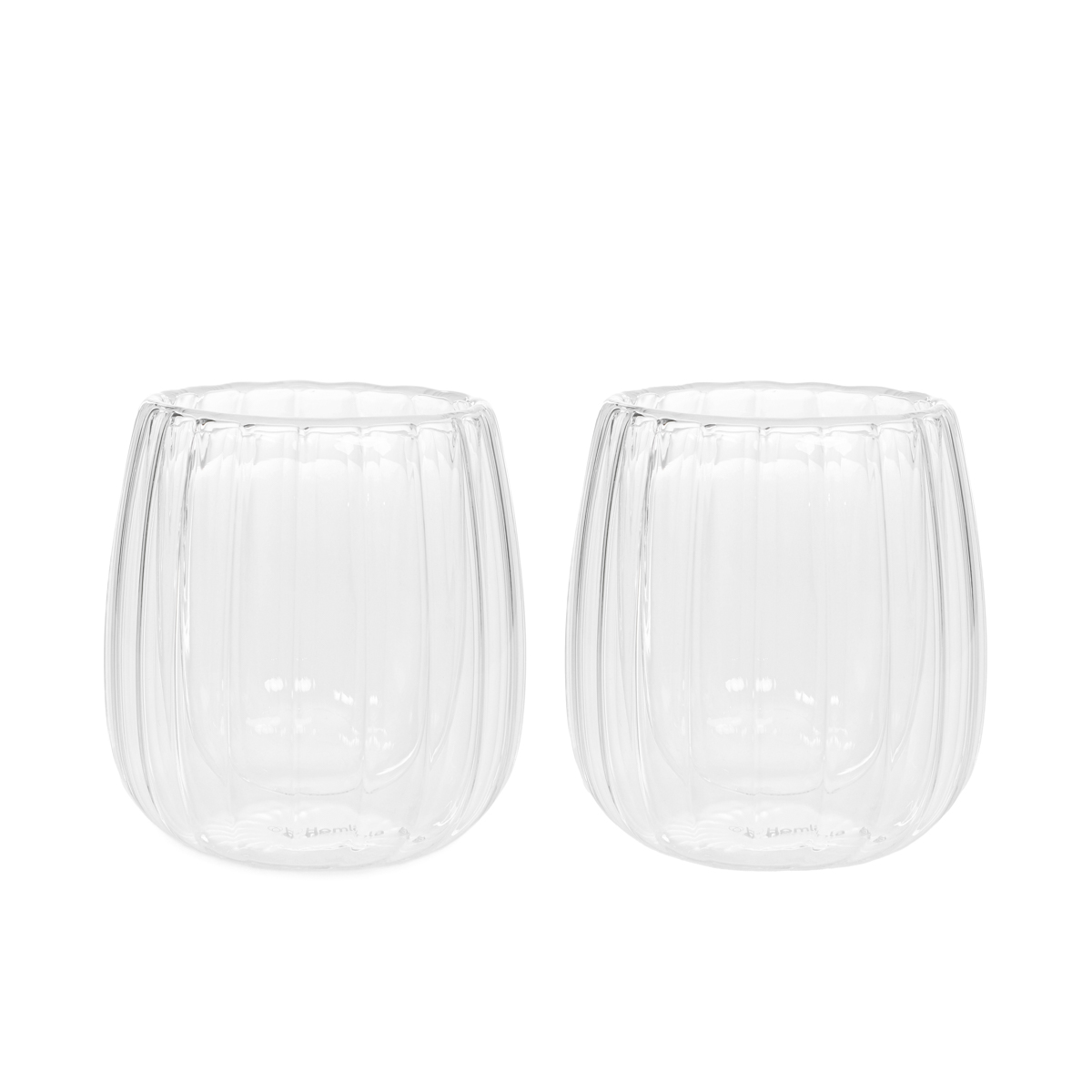 TheHOMLACEMBRA GROOVE double-walled glasses will be a beautiful setting for both hot and cold drinks. The set includes 2 glasses, each with a capacity of 250 ml. The double walls not only look great, but also maintain the temperature of the drink for longer and allow you to comfortably hold the glasses with the hot drink in your hand. The fluted glass adds elegance to the glasses and makes them look great on the table.