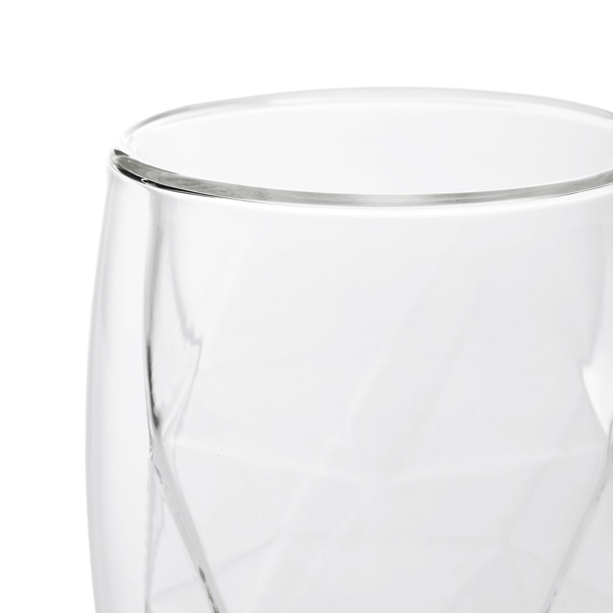 Start your morning with an aromatic coffee in an elegant HOMLA CEMBRA MODERN glass, giving yourself positive energy for the day. The set includes 2 glasses made of double glass, which wonderfully displays the color of the drinks. The geometric pattern adds a unique touch, making them look great on the table. You will be pleased to prepare a drink in them when meeting a friend, an evening just for yourself or preparing breakfast for bed.