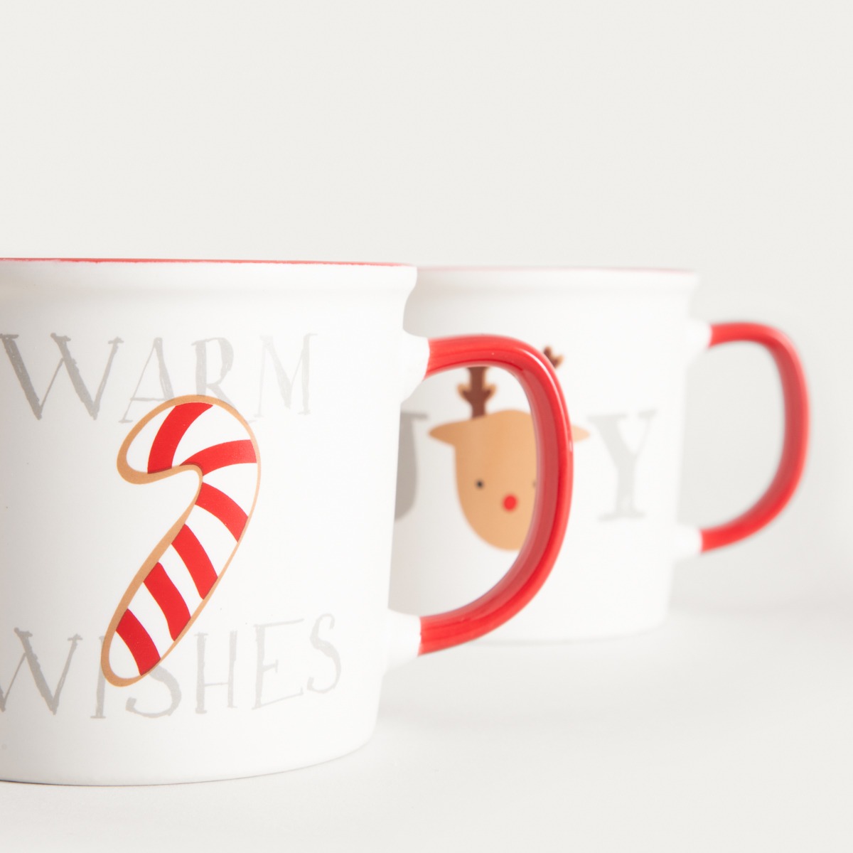 The set includes two 300 ml porcelain mugs, ideal for everyday use during the festive season. They will prove useful for morning coffee, afternoon tea or evening cocoa with marshmallows. Thanks to their universal shape and comfortable handle, they lie perfectly in the hand.