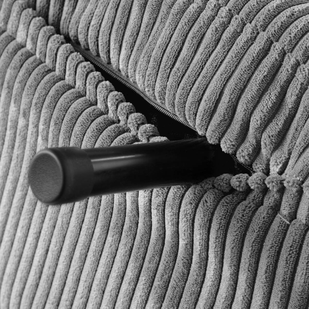 The frame of the sofa is made of MDF, which is surrounded by soft, springy polyurethane foam. A corduroy fabric is used as the upholstery, which is pleasant to the touch and remains resistant to abrasion.